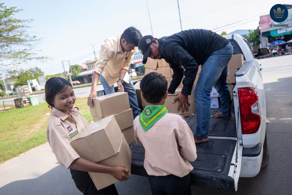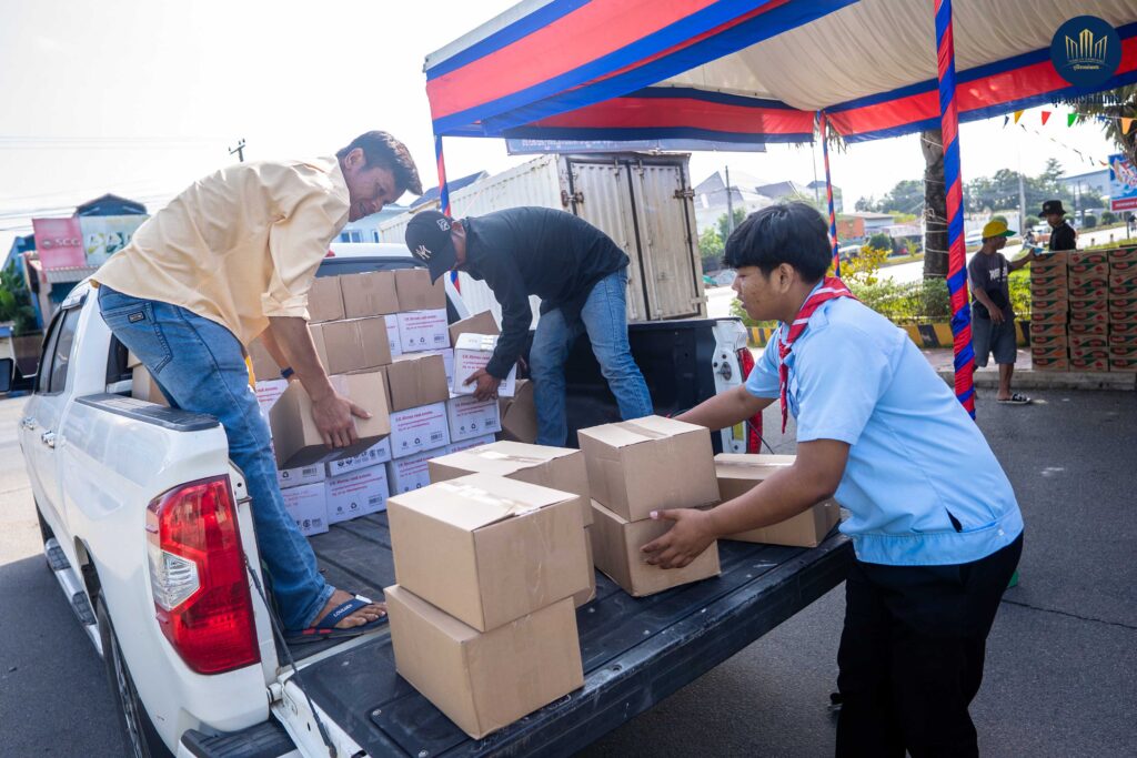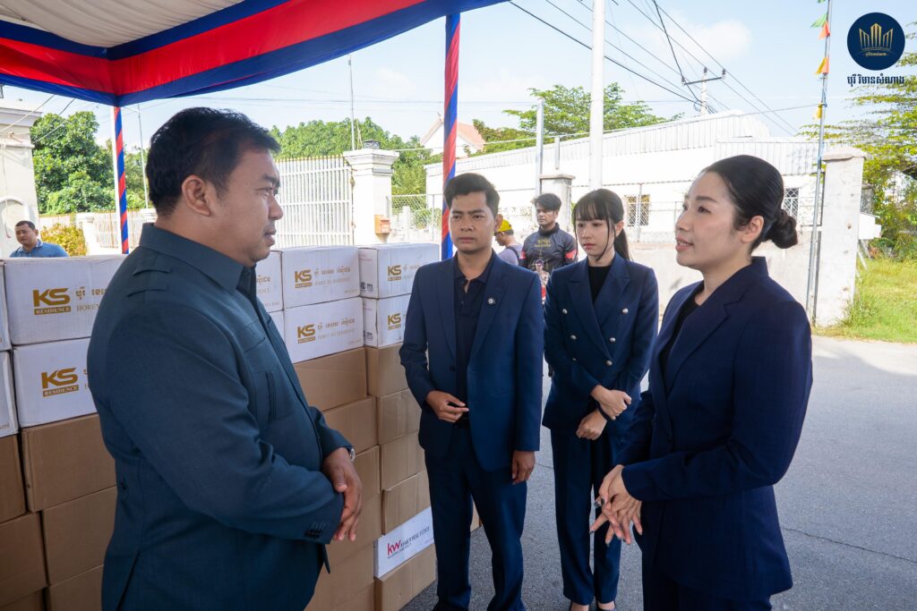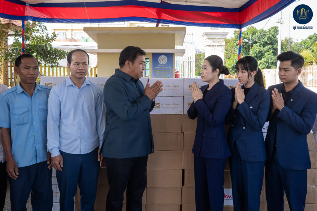 នាព្រឹកថ្ងៃសុក្រ ទី១២ ខែធ្នូ ឆ្នាំ២០២៥ នេះ តំណាងលោកឧកញ៉ាបណ្ឌិត គីម ហ៊ាង អគ្គនាយកបុរី វិមានសំណាង និងជំទាវឧកញ៉ា គង់ សំណាង បាននាំយកអំណោយមួយចំនួនទៅប្រគល់ជូន លោក ធឹម សំអាន អភិបាលខណ្ឌព្រែកព្នៅ ដើម្បីយកទៅផ្តល់ជូនដល់កងទ័ពជួរមុខ និងប្រជាពលរដ្ឋខ្មែរ ដែលកំពុងភៀសសឹក។