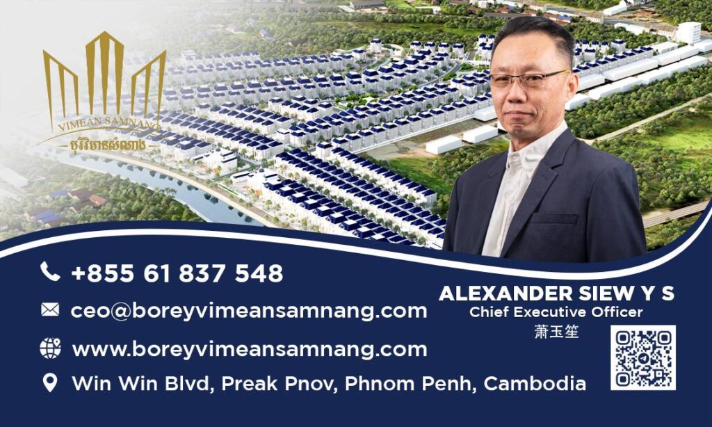 ឧកញ៉ាបណ្ឌិត គីម ហ៊ាង អគ្គនាយកបុរី វិមានសំណាង បានសម្រេចតែងតាំងលោក Alexander Siew Y S ជានាយកប្រតិបត្តិ (CEO) របស់ក្រុមហ៊ុន បុរី វិមានសំណាង ម.ក។
