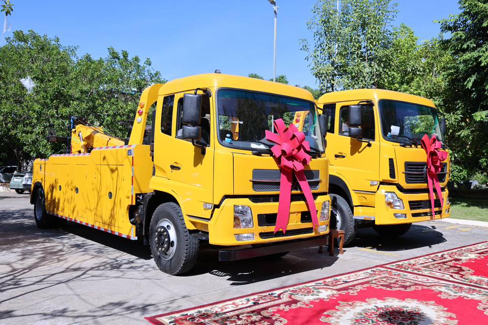 ឯកឧត្តម ភឺន ផល្លា និងជំទាវឧកញ៉ា សាយ សោភា ផ្ដល់អំណោយរថយន្តស្ទូចសណ្ដោងធុនធ្ងន់ ២គ្រឿង ជូនដល់រដ្ឋបាលខេត្តកណ្ដាល