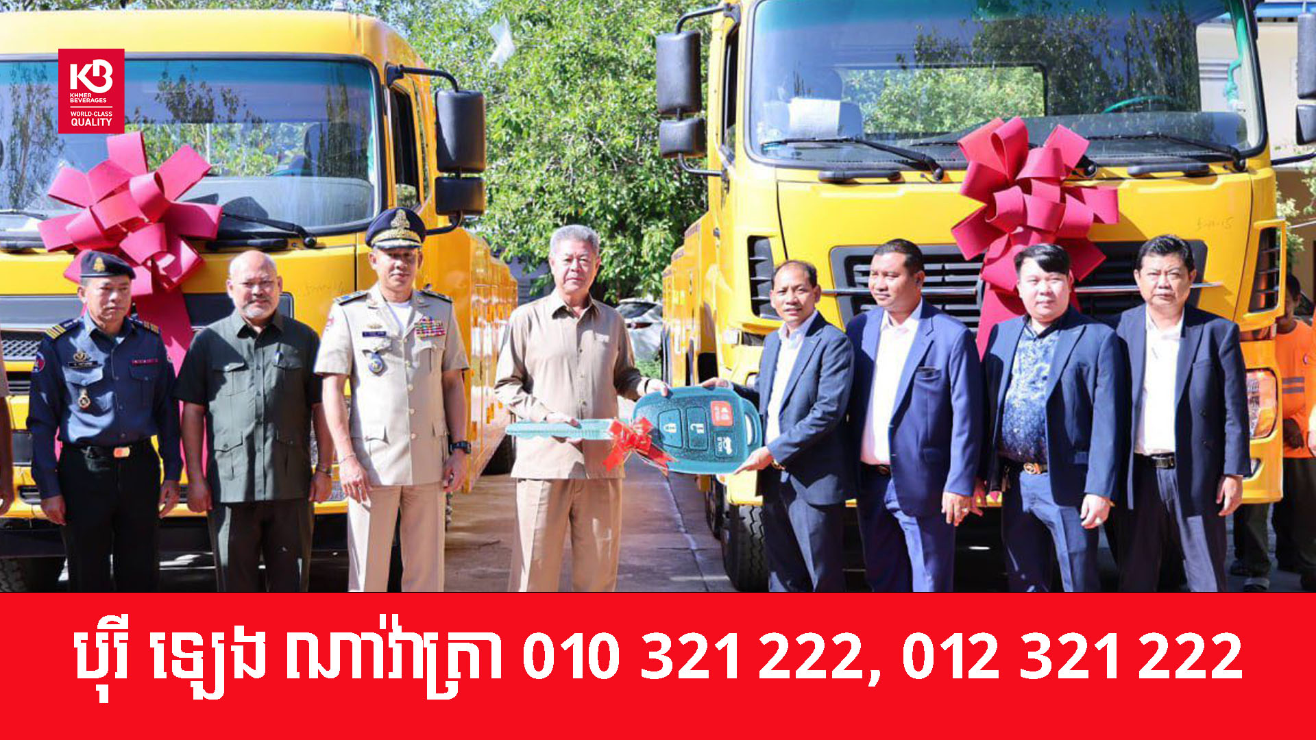 ឯកឧត្តម ភឺន ផល្លា ជំនួយការផ្ទាល់សម្តេចតេជោ ហ៊ុន សែន និងលោកជំទាវឧកញ៉ា សាយ សោភា អគ្គនាយិកាសាលាអន្តរជាតិវើលដ៍កម្ពុជា កាល​រសៀលថ្ងៃទី២៣ ខែធ្នូ ឆ្នាំ២០២៥ បានប្រគល់រថយន្តស្ទូចសណ្ដោងធុនធ្ងន់ ចំនួន ២គ្រឿង ជូនឯកឧត្តម គួច ចំរើន អភិបាល នៃគណៈអភិបាលខេត្តកណ្តាល និងបានប្រគល់ជូន លោក បូរី វង្សសានិត្យ ប្រធានមន្ទីរ​សាធារណៈការ និងដឹកជញ្ជូនខេត្តកណ្តាល ក្នុងការអនុវត្តការងារប្រចាំថ្ងៃ។