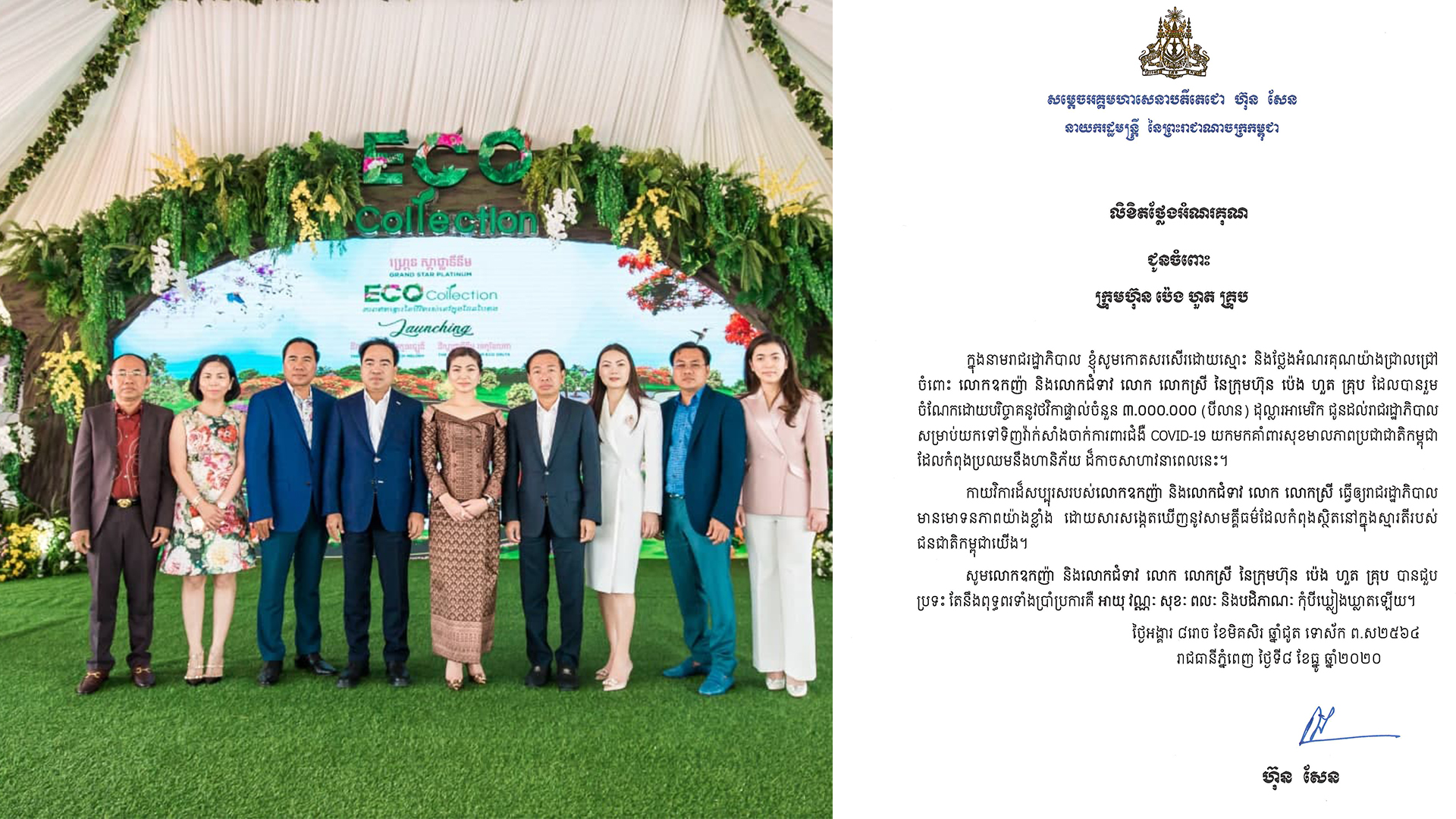 ជាក់ស្តែងកាលពីថ្ងៃទី០៨ ខែធ្នូ ឆ្នាំ២០២០ ក្រុមហ៊ុន ប៉េង ហួត គ្រុប បានបរិច្ចាគថវិកាលើកទី១ ចំនួន ៣លានដុល្លារអាមេរិច ជូនសម្តេចតេជោ ហ៊ុន សែន នាយករដ្ឋមន្ត្រីកម្ពុជា ដើម្បីទិញវ៉ាក់សាំងកូវីដ១៩ មកចាក់ជូនប្រជាពលរដ្ឋដោយឥតគិតថ្លៃ។ រំលងមិនបានប៉ុន្មានខែផង កាលពីថ្ងៃទី១១ ខែមីនា ឆ្នាំ២០២១ ក្រុមហ៊ុន ប៉េង ហួត គ្រុប បានបន្តបរិច្ចាគថវិកាសប្បុរសធម៌របស់ខ្លួនចំនួន ៣លានដុល្លារបន្ថែមទៀត ជូនរាជរដ្ឋាភិបាល សម្ដេចតេជោ ហ៊ុន សែន ដើម្បីជាការឆ្លើយតបទៅការចូលរួមទប់ស្កាប់ការរីករាលដាលជំងឺកូវីដ១៩ ដែលបានផ្ទុះលក្ខណៈទ្រង់ទ្រាយធំ ក្នុងព្រឹត្តិការណ៍សហគមន៍ ២០កុម្ភៈ កន្លងទៅថ្មីៗនេះ។