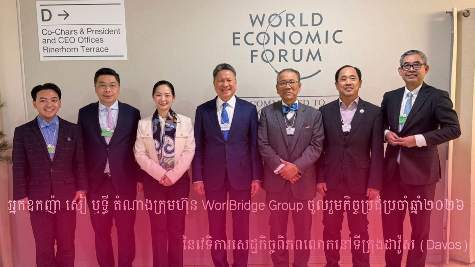 ទីក្រុងដាវ៉ូស ប្រទេសស្វីស នាថ្ងៃទី២៤ ខែមករា ឆ្នាំ២០២៦ អ្នកឧកញ៉ា សៀ ឬទ្ធី ប្រធានក្រុមប្រឹក្សាភិបាលនៃក្រុមហ៊ុន WorldBridge Group បានចូលរួមកិច្ចប្រជុំប្រចាំឆ្នាំ ២០២៦ នៃវេទិកាសេដ្ឋកិច្ចពិភពលោក (World Economic Forum Annual Meeting 2026 – WEF26) ដែលបានប្រព្រឹត្តទៅចាប់ពីថ្ងៃទី១៩ ដល់ថ្ងៃទី២៣ ខែមករា នៅទីក្រុងដាវ៉ូស ប្រទេសស្វីស។