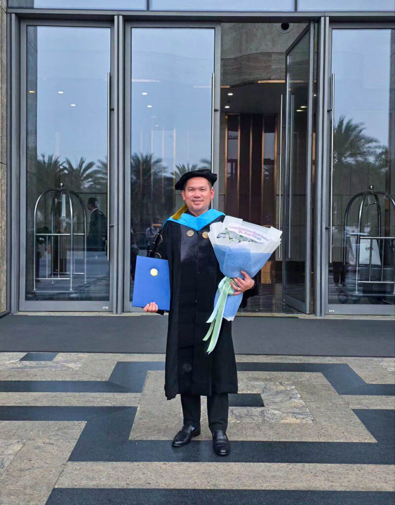 អ្នកឧកញ៉ាបណ្ឌិត សួរ វីរៈ ទទួលបានសញ្ញាបត្រ បណ្ឌិតទស្សនវិជ្ជា ផ្នែកគ្រប់គ្រងទូទៅ ពីសាកលវិទ្យាល័យដ៏ល្បីមួយ នៅអាមេរិក