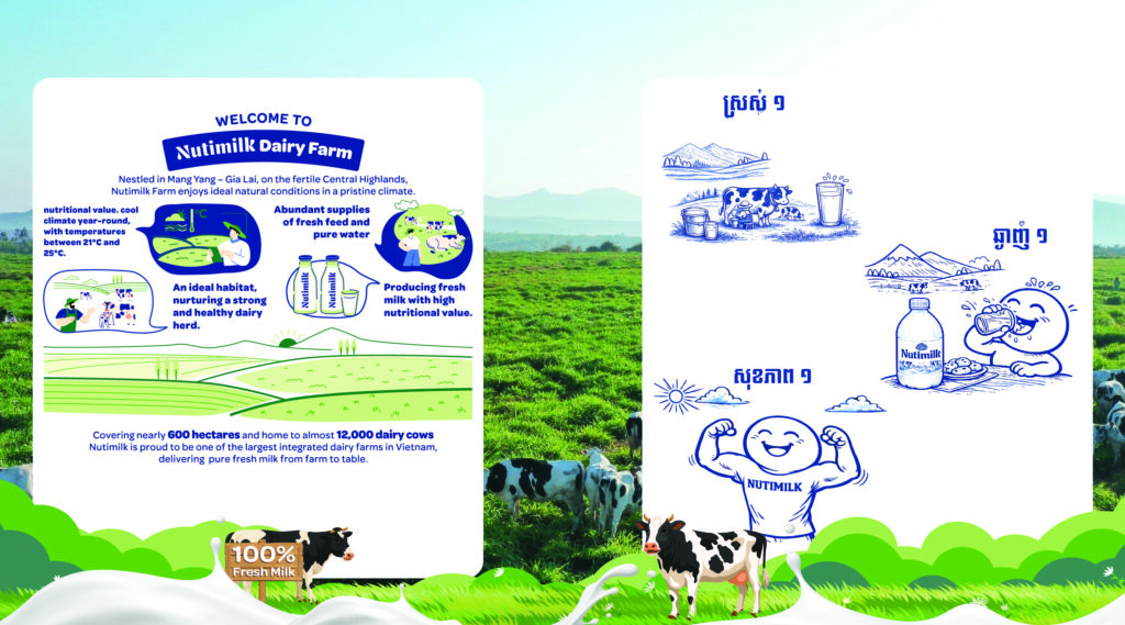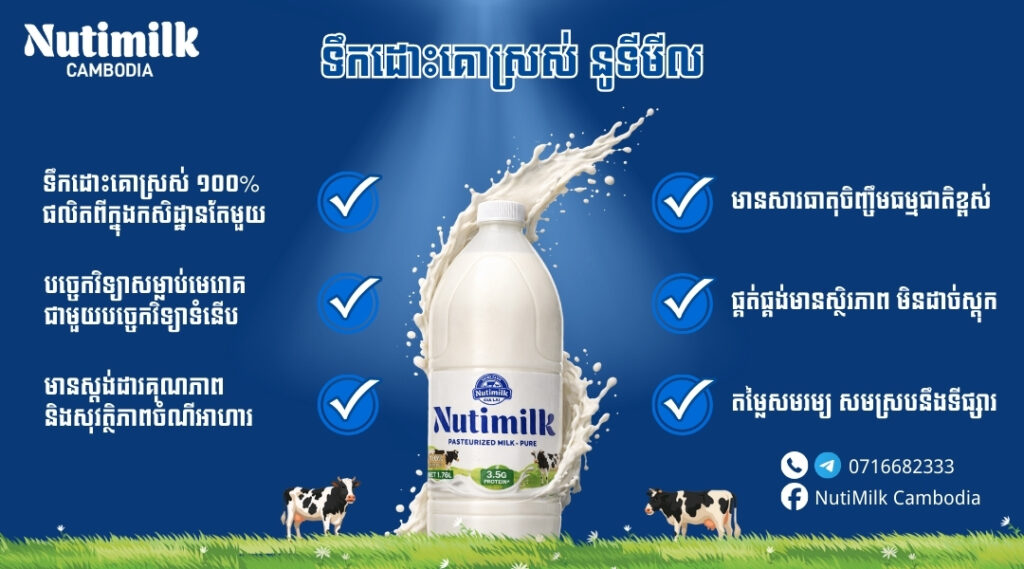 (រាជធានីភ្នំពេញ) ហេរីធេច ហូម & លីវីង ឯ.ក (Heritage Home & Living Co., Ltd) សូមប្រកាសជាផ្លូវការអំពីការនាំចូល ទឹកដោះគោស្រស់នូទីមីល (NutiMilk Pasteurized Milk) មកកាន់ទីផ្សារកម្ពុជា ដោយចាប់ផ្តើមចែកចាយពី ថ្ងៃទី ៣០ ខែមករា ឆ្នាំ២០២៦ តទៅ។ នូទីមីល គឺជាទឹកដោះគោស្រស់ ១០០% ផលិតពីកសិដ្ឋាន តែមួយនៅខេត្តហ្សាឡៃ ប្រទេសវៀតណាមដែលមានព្រុំប្រទល់ជាប់នឹងខេត្តរតនៈគីរីរបស់ប្រទេសកម្ពុជា ដែលទីតាំងនេះជាទីតាំងពិសេសទាំងទឹក ដី ខ្យល់ ស្មៅ អាកាសធាតុ ដោយយើងអាចធានាបានថាការផលិតទឹកដោះគោរបស់យើងផលិតឡើងក្នុងបរិយាកាសល្អ ដើម្បីទទួលបាននូវផលិតផលមួយដែលមានគុណភាព និងសុវត្តិភាពជូនដល់ប្រជាជនកម្ពុជា។