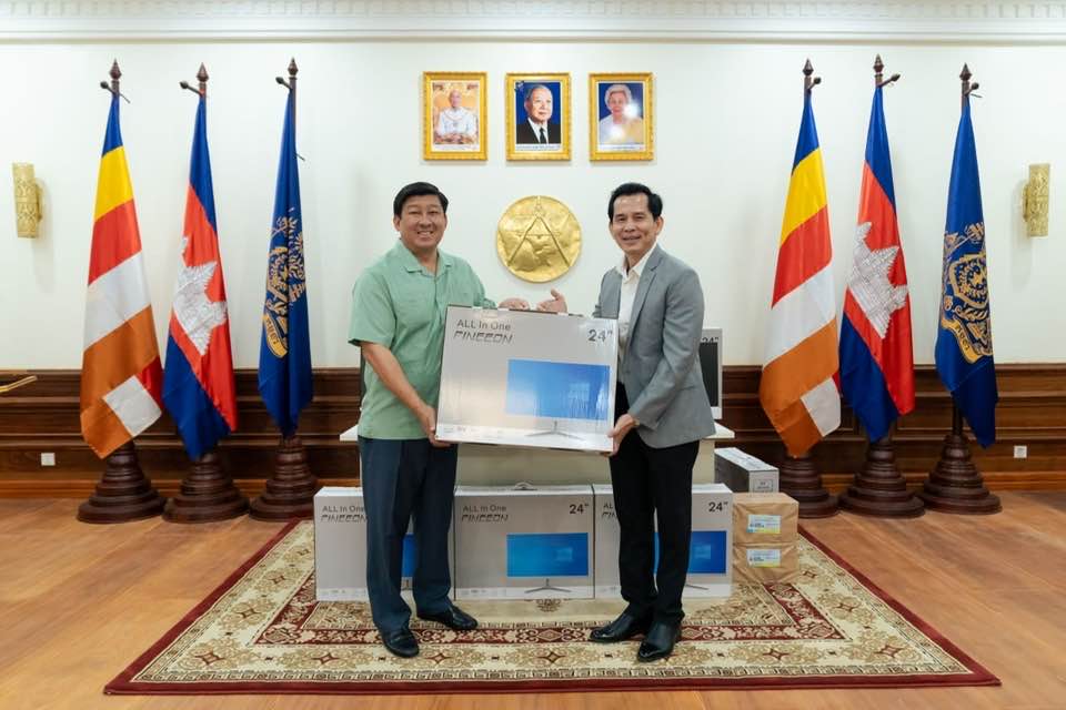 ឧកញ៉ា តាន់ មុនីវណ្ណ អនុប្រធានសភាពាណិជ្ជកម្មកម្ពុជា និងជាសហប្រធានក្រុមការងារ “ឌ” “ផ្នែកសំណង់ និងអចលនទ្រព្យ” ផ្នែកឯកជន កាលថ្ងៃទី១៩ ខែកុម្ភៈ ឆ្នាំ២០២៦ បាននាំយកកុំព្យូទ័រជាច្រើនគ្រឿង ប្រគល់ជូន ឯកឧត្តម សាយ សំអាល់ ឧបនាយករដ្ឋមន្ត្រី រដ្ឋមន្ត្រីក្រសួងរៀបចំដែនដី នគរូបនីយកម្ម និងសំណង់ នៅទីស្តីការក្រសួង ដើម្បីជួយលើការងារអភិវឌ្ឍធនធានមនុស្ស និងការអភិវឌ្ឍជំនាញ។