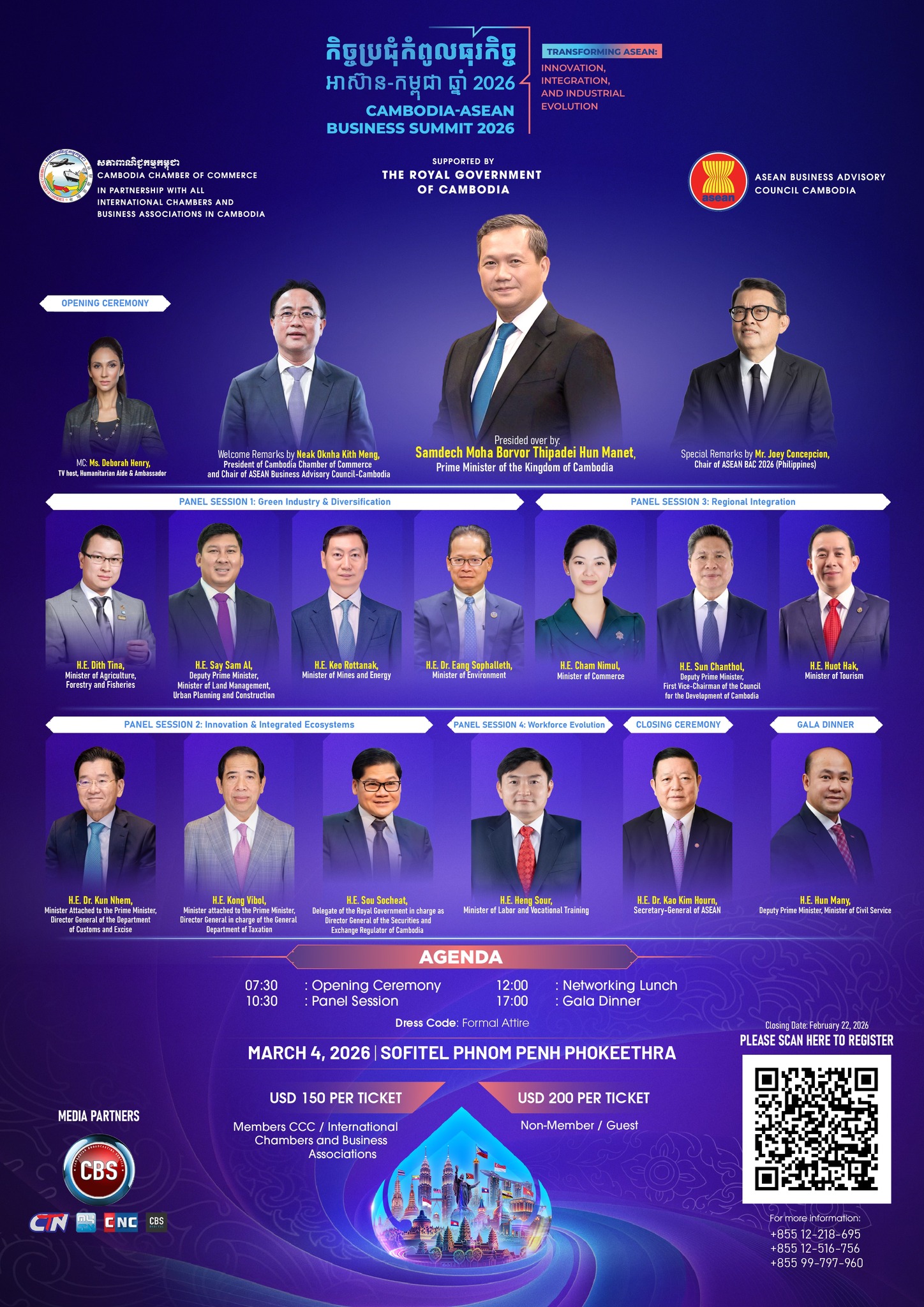 សភាពាណិជ្ជកម្មកម្ពុជា បានឱ្យដឹងថា «កិច្ចប្រជុំកំពូលធុរកិច្ចអាស៊ាន-កម្ពុជាឆ្នាំ២០២៦» (Cambodia-ASEAN Business Summit 2026) នៅរាជធានីភ្នំពេញ ក្រោមមូលបទ ការផ្លាស់ប្តូរអាស៊ាន៖ នវានុវត្តន៍ សមាហរណកម្ម និងការវិវត្តឧស្សាហកម្ម (Transforming ASEAN: Innovation, Integration, and Industrial Evolution) ដែលពិធីបើកកិច្ចប្រជុំកំពូលធុរកិច្ចនេះ នឹងប្រព្រឹត្តនៅថ្ងៃទី៤ ខែមីនា ឆ្នាំ២០២៦ ក្រោមអធិបតីភាពដ៏ខ្ពង់ខ្ពស់របស់ សម្តេចមហាបវរធិបតី ហ៊ុន ម៉ាណែត នាយករដ្ឋមន្ត្រីនៃព្រះរាជាណាចក្រកម្ពុជា។