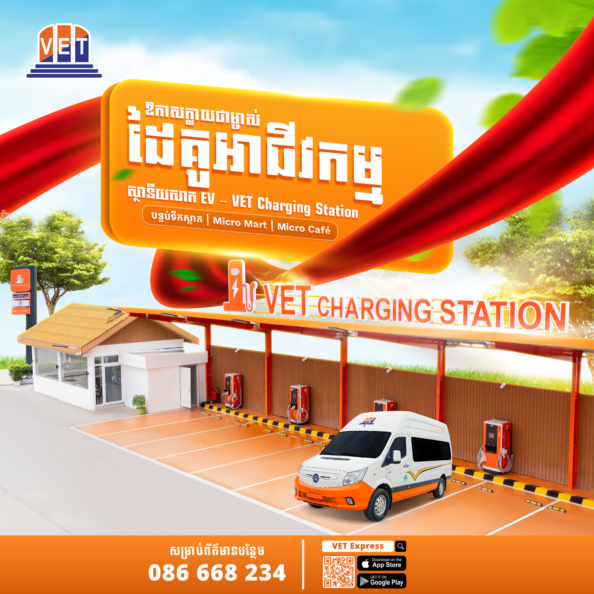 ថ្មីៗនេះ អ្នកឧកញ៉ាបណ្ឌិត សួរ វីរៈ បានប្រកាសដាក់ចេញផែនការអាជីវកម្មចំនួន ១៤ ក្នុងឆ្នាំ២០២៦នេះ ក្នុងនោះរួមទាំង ការពង្រីកស្ថានីយសាករថយន្តអគ្គីសនី វិរៈ ប៊ុនថាំ (VET EV Charging Station) ទូទាំងប្រទេសឱ្យបាន ១០០សាខា។