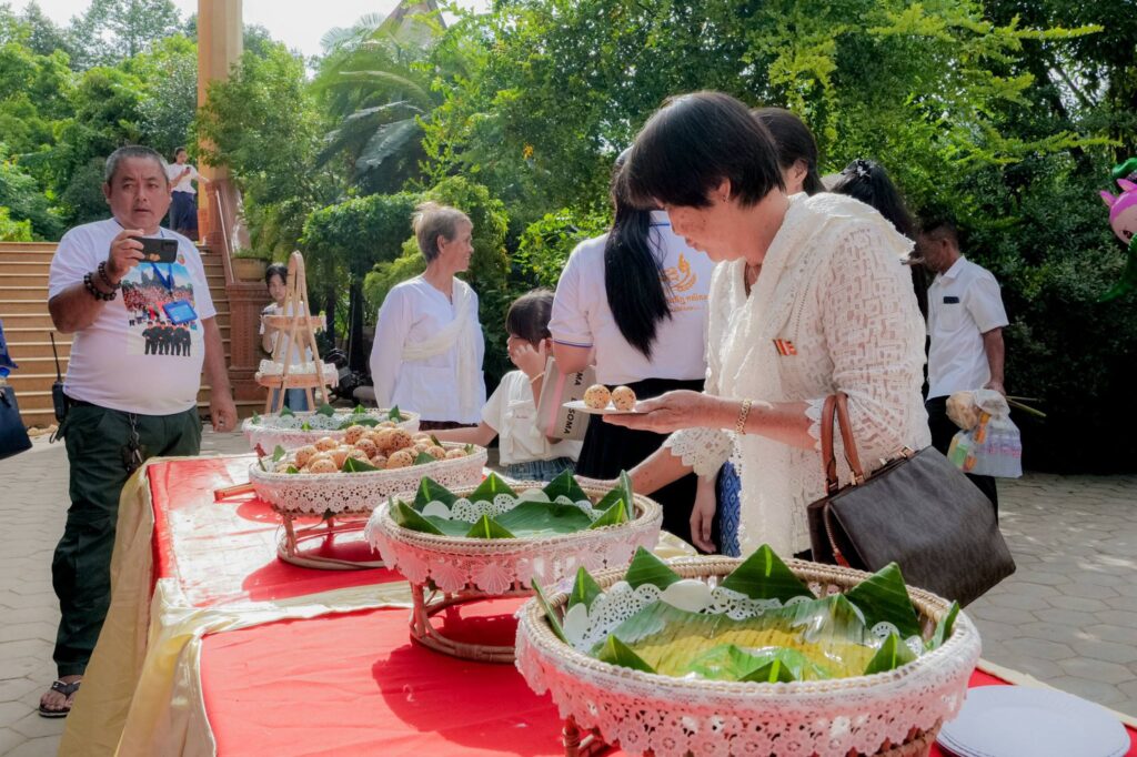 លោកអ្នកឧកញ៉ា លាង ឃុន សហស្ថាបនិកក្រុមហ៊ុន ជីប ម៉ុង និងលោកជំទាវ តែ សុវណ្ណី ព្រមទាំងក្រុមគ្រួសារ បានធ្វើនំខ្មែរចម្រុះចំនួន ៤៨៥០ នំ ប្រគេនព្រះសង្ឃ និងញោមញាតិពុទ្ធបរិស័ទពិសារ ក្នុងថ្ងៃទិវាបុណ្យរំលឹកព្រះឧបការគុណ សម្ដេចព្រះសង្ឃរាជ ជោតញ្ញាណោ ជួន ណាត និងក្រុមជំនុំព្រះត្រៃបិដកខ្មែរ លើកទី១៥ នៅវត្តរាជបូណ៌ ក្រុងសៀមរាប ខេត្តសៀមរាប។