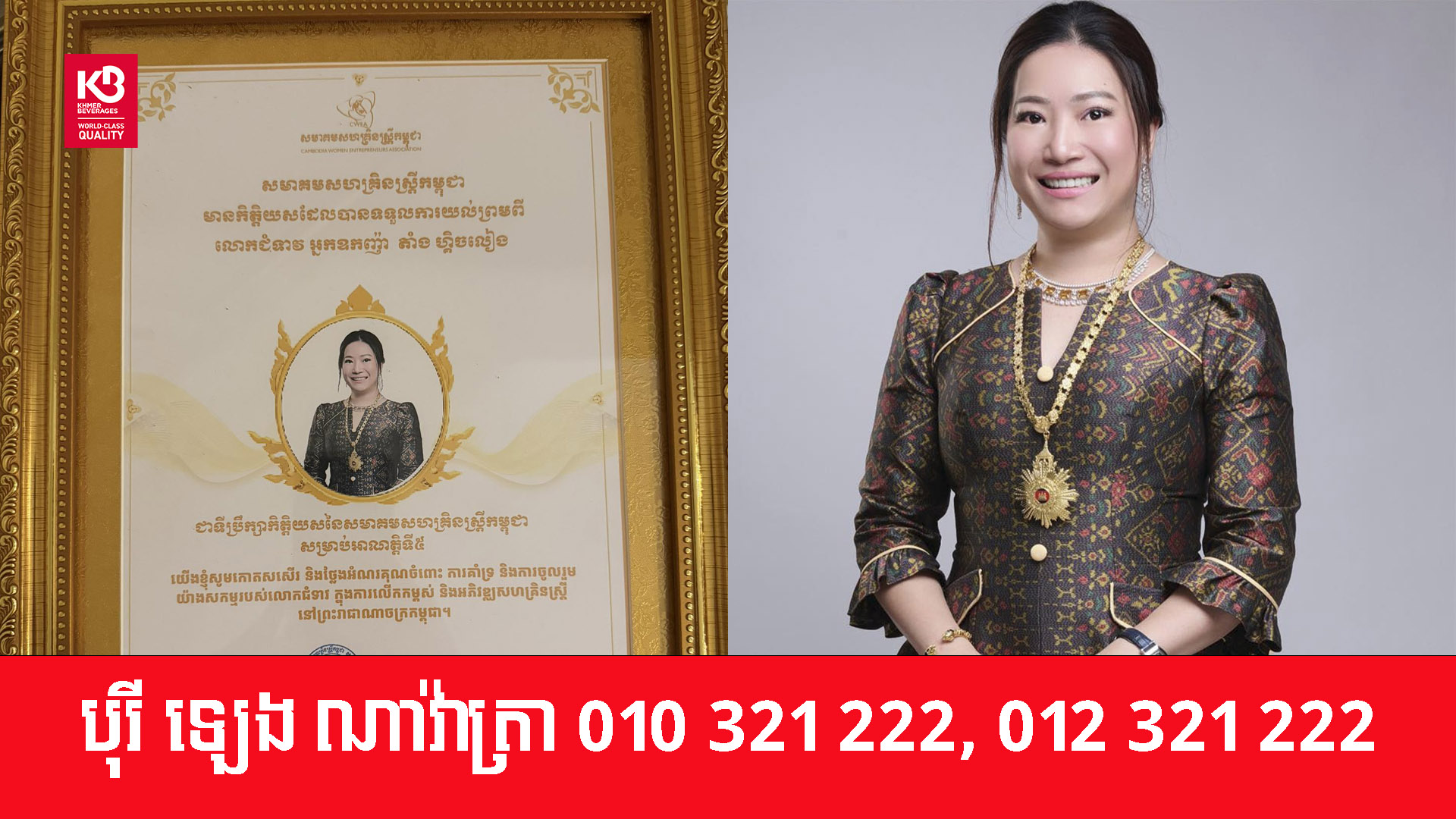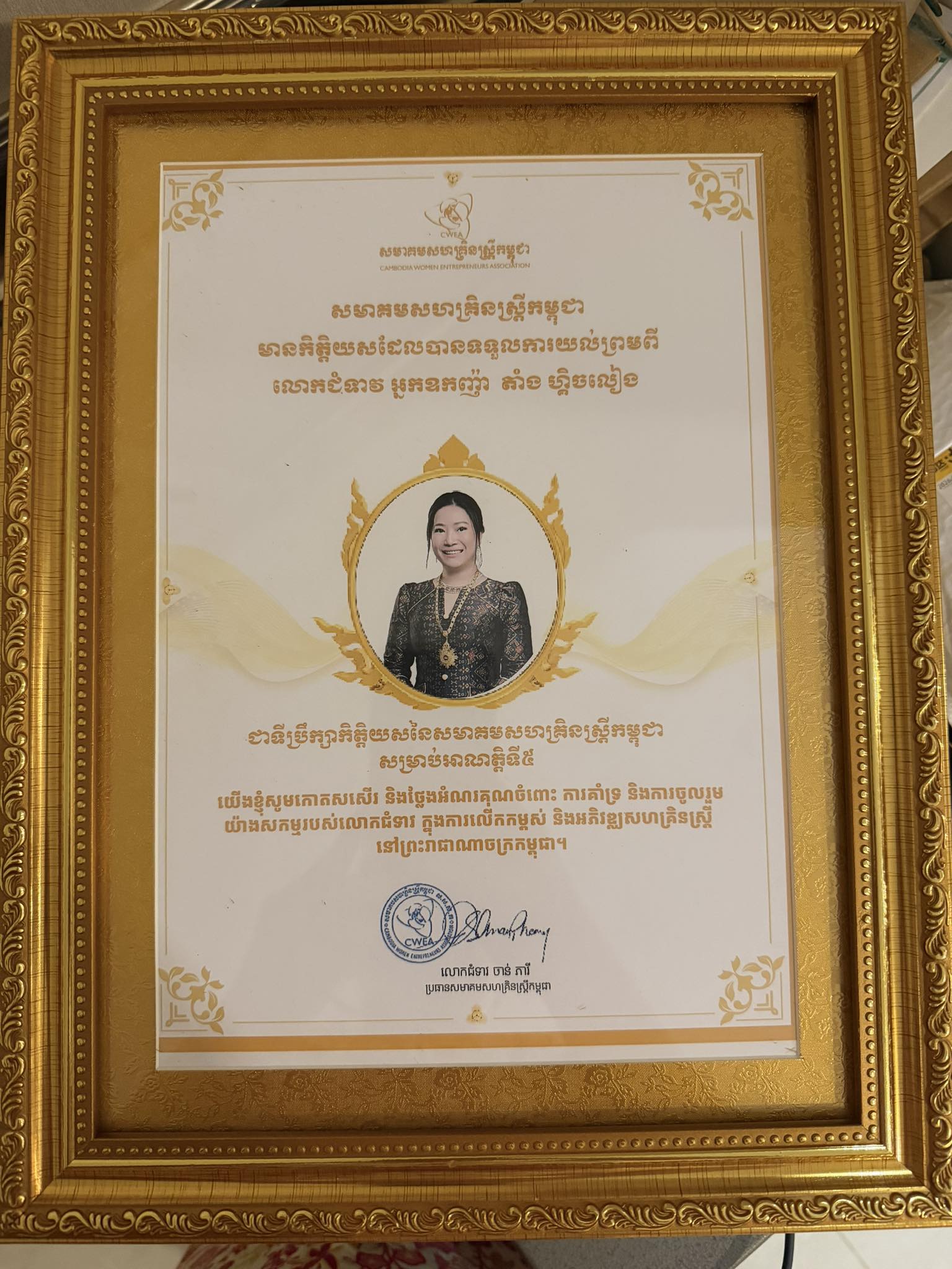 លោកជំទាវអ្នកឧកញ៉ា តាំង ហ្គិចលៀង អគ្គនាយិកាក្រុមហ៊ុន H&L Group Co.,LTD ទទួលបានការតែងតាំងជា «ទីប្រឹក្សាកិត្តិយសនៃសមាគមសហគ្រិនស្ត្រីកម្ពុជា (CWEA)» សម្រាប់អាណត្តិទី៥។