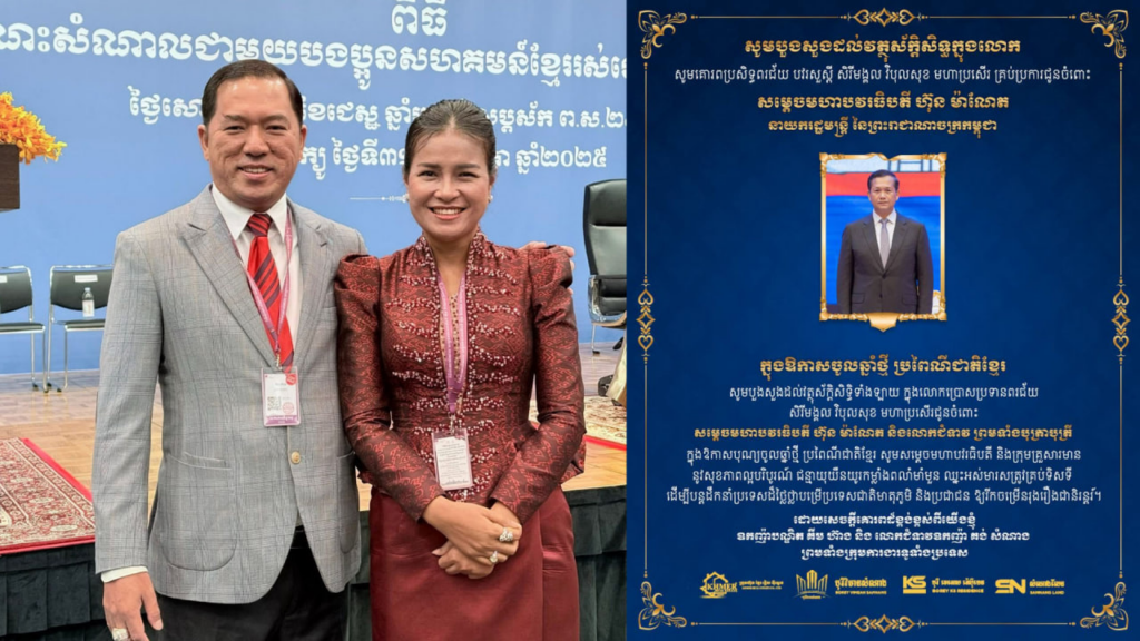 ឧកញ៉ាបណ្ឌិត គីម ហ៊ាង អគ្គនាយក បុរី វិមានសំណាង និងលោកជំទាវ ឧកញ៉ា គង់ សំណាង ព្រមទាំងបុគ្គលិកក្រោមឱវាទគ្រប់ជាន់ថ្នាក់ បានផ្ញើសារលិខិតគោរពជូនពរ សម្ដេចមហាបវរធិបតី ហ៊ុន ម៉ាណែត នាយករដ្ឋមន្ត្រីនៃកម្ពុជា និងលោកជំទាវ បណ្ឌិត ពេជ ចន្ទមុន្នី ហ៊ុនម៉ាណែត ក្នុងឱកាសពិធីបុណ្យចូលឆ្នាំថ្មី ប្រពៃណីជាតិខ្មែរ ឆ្នាំមមី អដ្ឋស័ក ព.ស.២៥៧០ គ.ស.២០២៦។