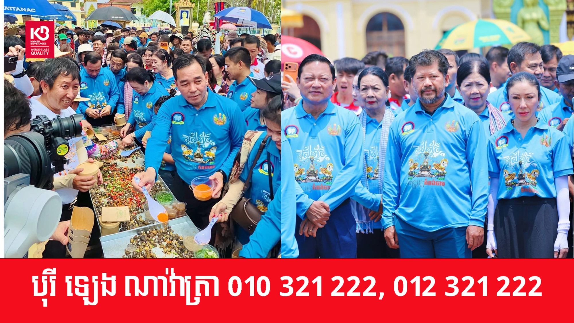 ពិធីបេីកព្រឹត្តិការណ៍លៀសហាល ៥តោន ថ្ងៃទីពីរ នៃសង្រ្គាន្តកំពង់ចាម ឆ្នាំ២០២៦ បានធ្វើឡើងក្រោមអធិបតីភាព ឯកឧត្តម ហួត ហាក់ រដ្ឋមន្ត្រីក្រសួងទេសចរណ៍ និង ឯកឧត្តម អ៊ុន ចាន់ដា អភិបាលនៃគណៈអភិបាលខេត្តកំពង់ចាម និងលោកជំទាវ ដោយមានការអញ្ជើញចូលរួមជាកិត្តិយសពីសំណាក់លោកជំទាវ លាង វួចឆេង សម្តេចឧត្តមទេពញាណ ហ៊ុន ណេង អ្នកឧកញ៉ា ហ៊ុន តូ អ្នកឧកញ៉ា សំអាង វឌ្ឍនៈ ព្រមទាំងថ្នាក់ដឹកនាំ មន្ត្រីរាជការ បងប្អូនប្រជាពលរដ្ឋយ៉ាងច្រើនកុះករ ស្ថិតនៅខាងមុខសាលាខេត្តកំពង់ចាម នាព្រឹកថ្ងៃទី១៥ ខែមេសា ឆ្នាំ២០២៦។