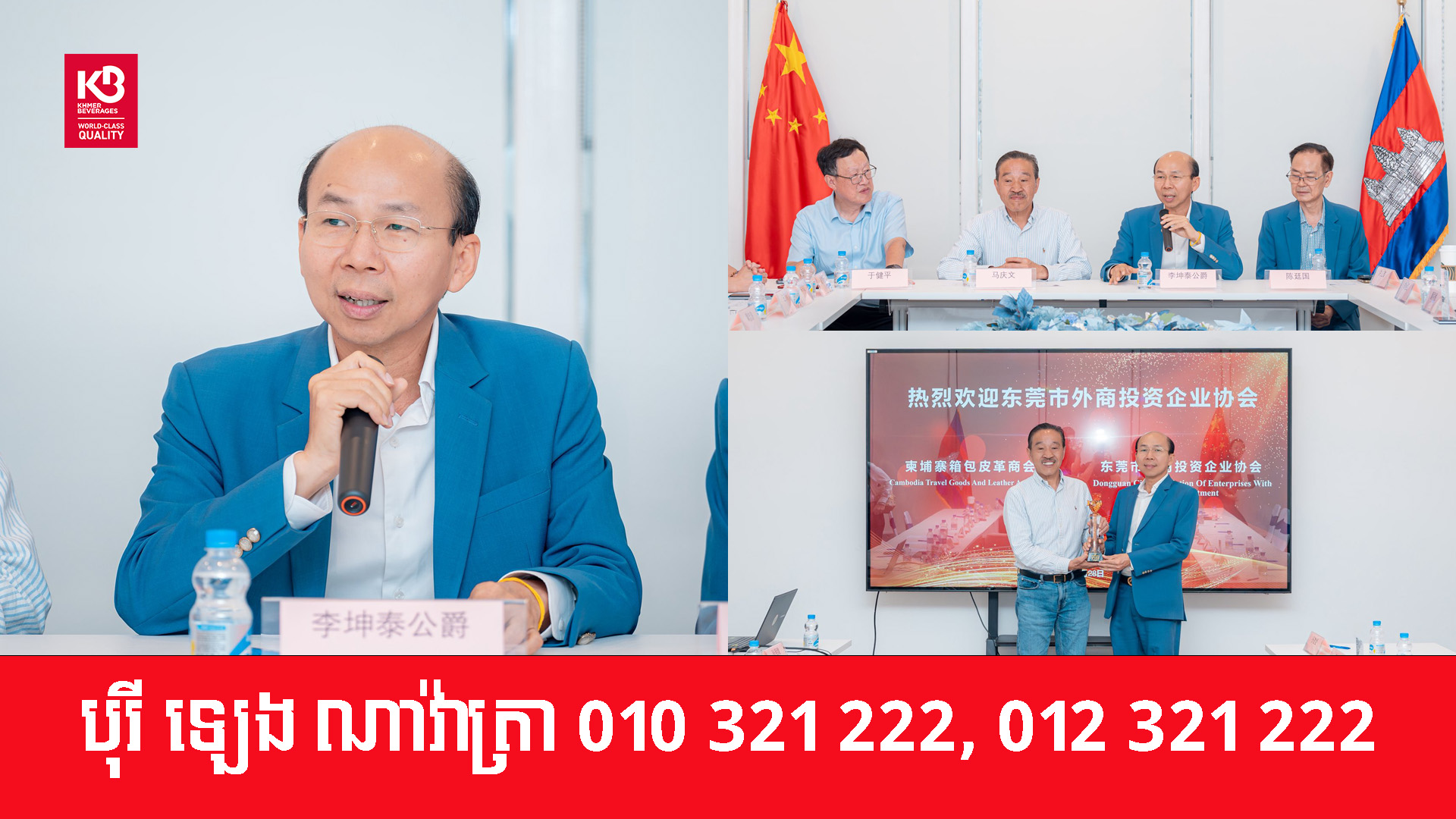 អ្នកឧកញ៉ា លី ឃុនថៃ ប្រធានកិត្តិយសសមាគមផលិតផលធ្វើដំណើរ និងស្បែកនៅកម្ពុជា និងជាប្រធានសមាគម​សហព័ន្ធអ្នកវិនិយោគកម្ពុជា នៅថ្ងៃទី២៨ ខែមេសា ឆ្នាំ២០២៦ បានទទួលជួប និងពិភាក្សាការងារជាមួយលោក Bor Ma និងគណៈប្រតិភូមកពី DONGGUAN CITY ASSOCIATION OF ENTERPRISE WITH FOREIGN INVESTMENT នៃសាធារណរដ្ឋប្រជាមានិតចិន នៅអគារ The Gateway។