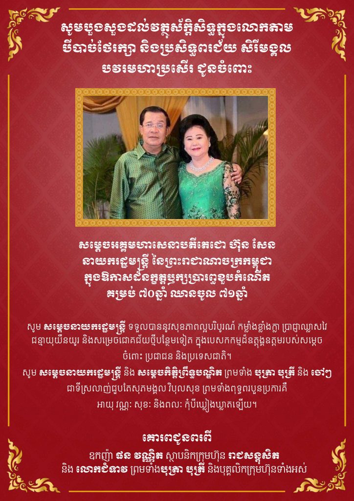 ឧកញ៉ា ផន វណ្ណិត ផ្ញើសារគោរពជូនពរសម្តេចតេជោ ហ៊ុន សែន ក្នុងឱកាសប្រារព្ធខួបកំណើត