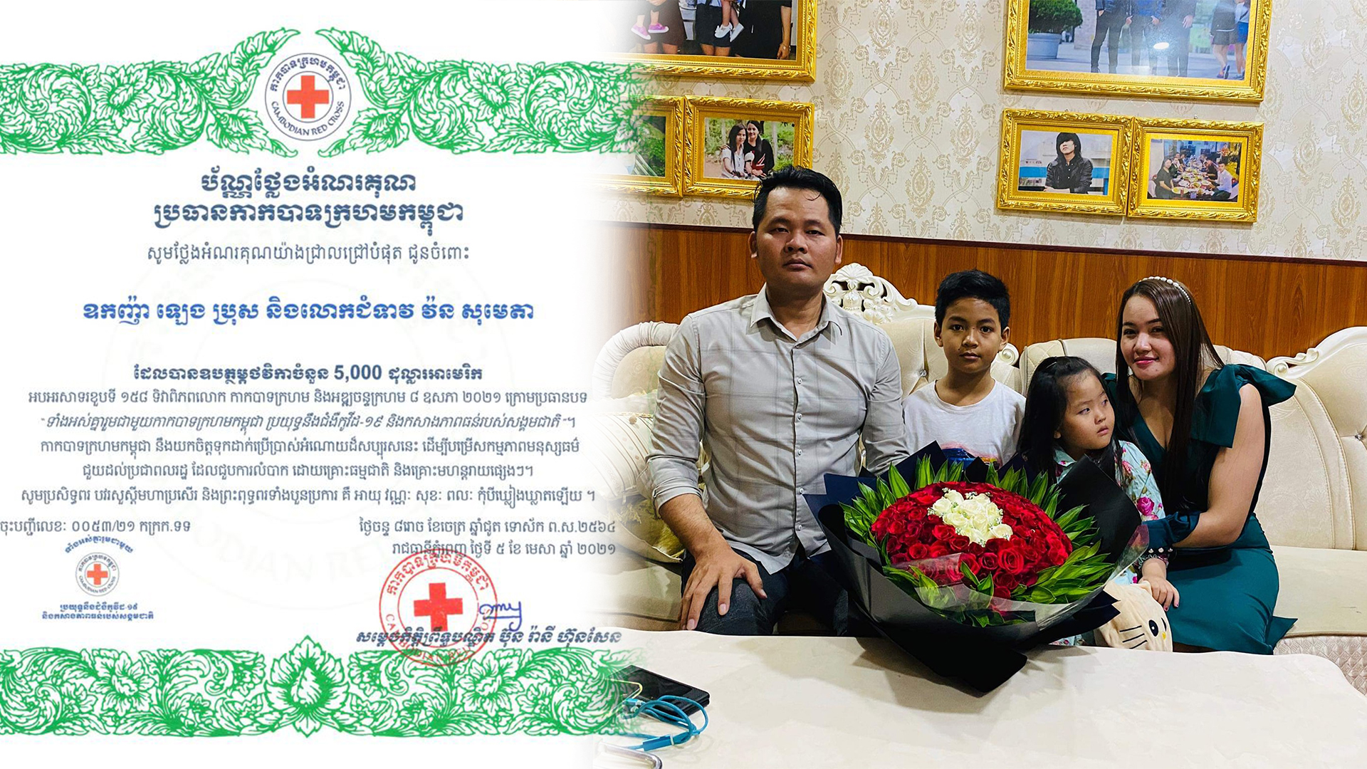 ក្នុងឱកាសខួបទី១៥៨ ទិវាពិភពលោកកាកបាទក្រហម និងអឌ្ឍចន្ទក្រហម ៨ ឧសភា ឆ្នាំ២០២១លោក ឧកញ៉ា ឡេង ប្រុស និងលោកជំទាវ វ៉ន សុមេតា ឧបត្ថម្ភថវិកា ៥ពាន់ដុល្លារ ជូនកាកបាទក្រហមកម្ពុជា។