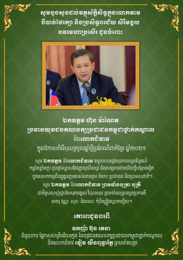 ឧកញ៉ា ប៊ុន រតនា និងលោកជំទាវ សូមគោរពជូនពរ ឯកឧត្ដម ហ៊ុន ម៉ាណែត ប្រធានយុវជនគណបក្សប្រជាជនកម្ពុជាថ្នាក់កណ្ដាល