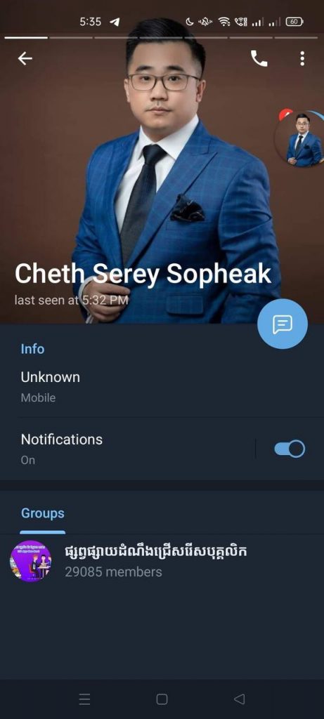 ក្នុងគ្រុបតេឡេក្រាម ក្រុមប្រឆាំងព័ត៌មានក្លែងក្លាយ នៅរសៀលថ្ងៃទី១១នេះ លោកឧកញ៉ា ចិត្រ សិរីសុភ័ក្ត្រ អគ្គនាយកក្រុមហ៊ុន Luxury Smile Group បាននិយាយថា សូមជម្រាបជូនដំណឹងដល់ពុកម៉ែបងប្អូនទាំងអស់ឲ្យបានជ្រាបថា៖ ដោយថ្មីៗនេះមានជនអនាមិក បានយករូបភាព និងឈ្មោះរបស់ខ្ញុំបាទ មកបង្កើតAccount នេះនៅក្នុងប្រព័ន្ធTelegram។