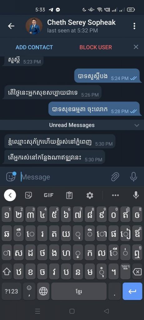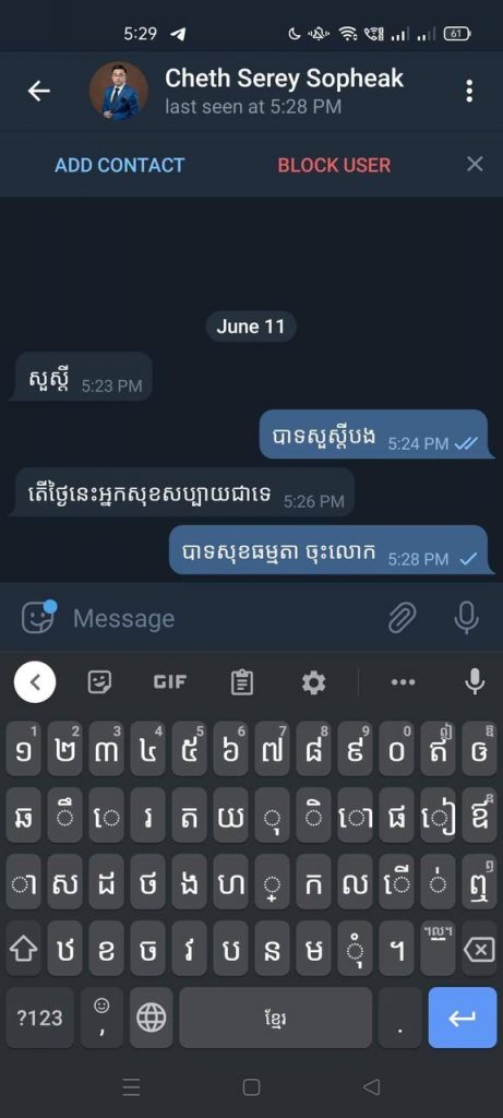 អាស្រ័យដូចបានជម្រាបជូនខាងលើ សូមពុកម៉ែបងប្អូន មានការប្រុងប្រយ័ត្នចំពោះAccount នេះផង ប្រសិនជាមានការទំនាក់ទំនង ឬបញ្ហាផ្សេងៗ ដោយមានពាក់ព័ន្ធនឹងAccount មួយនេះខ្ញុំបាទនឹងមិនទទួលខុសត្រូវឡើយ៕