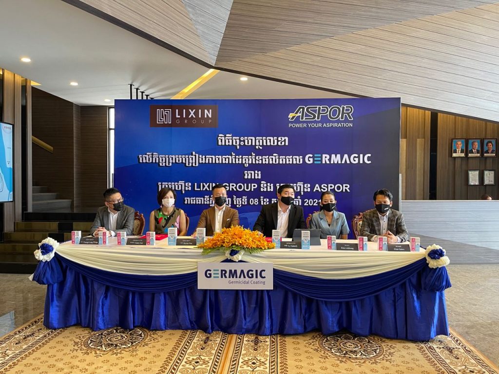 ពិធីចុះហត្ថលេខា លើកិច្ចព្រមព្រៀងភាពជាដៃគូនៃផលិតផលGermagic ក្រុមហ៊ុនLIXIN GROUP និងក្រុមហ៊ុនASPOR” បានធ្វើឡើងនៅរសៀលថ្ងៃទី០៨ ខែ កក្កដា ឆ្នាំ ២០២១នេះនៅអគារមជ្ឈមណ្ឌលលីស៊ីនCEO មុខវិទ្យាល័យបាក់ទូកក្រោមវត្តមានអគ្គនាយកក្រុមហ៊ុនទាំងពីរ ព្រមទាំងមានអ្នកសារព័ត៌មានជាតិនិងអន្តជាតិចូលរួមជាច្រើនផងដែរ។