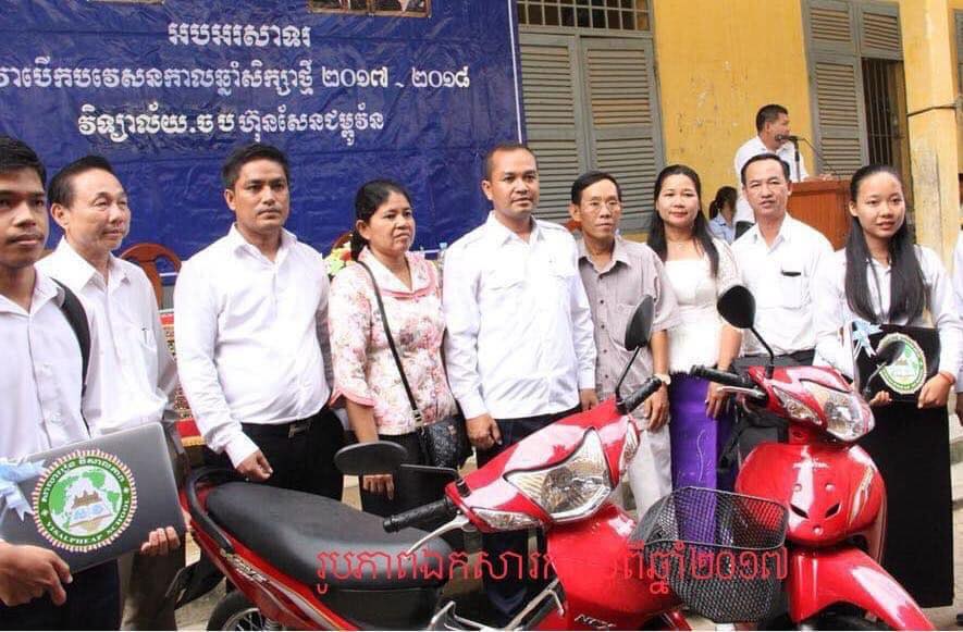 គណនីយFacebook ឈ្មោះ ហែម ដារិទ្ធិ ដែលគេស្គាល់ថា ជា អភិបាលខណ្ឌពោធិសែនជ័យបានសរសេរបែបនេះថា”សូមអរគុណដល់ប្អូនឧកញ៉ា៣ដួងដែលបានជួយម៉ូតូ៥គ្រឿងដល់ខ្ញុំសំរាប់ជូនសិស្សនិទ្ទេសA រួមមាន៖