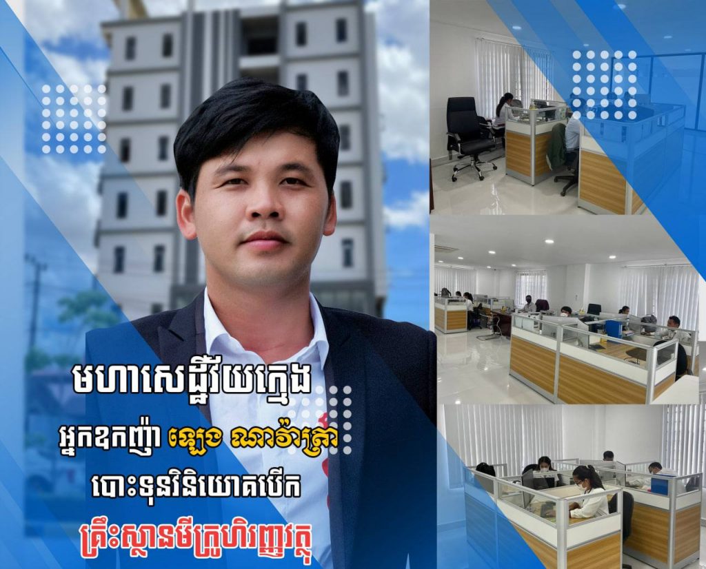 ១.វិស័យអចលនទ្រព្យ៖ ស្របពេលដែលទីផ្សារអចលនទ្រព្យកំពុងតែរីកចម្រើនខ្លាំង និងមានការចាប់អាម្មណ៍ខ្លាំងពីសំណាក់ប្រជាជនក្នុងស្រុក និងវិនិយោគិនពីក្រៅស្រុក។ លោកបានចាប់ឪកាសបើកអភិវឌ្ឍន៍គម្រោងថ្មីៗបន្តបន្ទាប់ដោយឈរលើតម្លៃទាបបំផុតក្នុងតំបន់។ ខណៈដែលអ្នកជំនួញរូបនេះ ត្រូវបានចាត់ថា ជាមនុស្សដែលតែងតែបង្កើតឪកាសវិនិយោគថ្មីៗ ហើយទៅវិនិយោគដល់កន្លែងណាផ្អើលគេឯងនៅកន្លែងទីនោះ ដូចជាគម្រោងដីឡូតិ៍នៅក្នុងស្រុកបន្ទាយស្រី ខេត្តសៀមរាប គម្រោង​ទីក្រុង​រណប China Poipet Satellite City​​ និងគម្រោង​រមណីយដ្ឋាន​សិប្បនិមិត្ត​លើ​ផ្ទៃ​ដី ៥០០ហិចតាជាដើម។