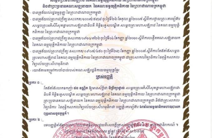 ឯកឧត្តមឧកញ៉ា ផន វណ្ណិត អតីតព្រះសង្ឃរៀនសូត្រជ្រៅជ្រះត្រូវបានសម្តេចព្រះមហាសង្ឃរាជ បួរ គ្រី ព្រះសាកលវិទ្យាធិការពុទ្ធិកសាកលវិទ្យាល័យព្រះសីហមុនីរាជា “ព្រះរាជទានជាទីប្រឹក្សាផ្ទាល់”