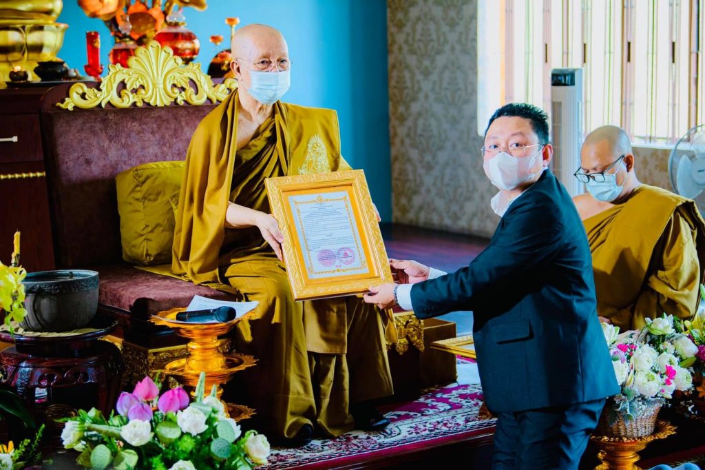 ព្រះរាជពិធីប្រគល់ធ្វើឡើងក្រោមព្រះរាជាធិបតីដ៏ខ្ពង់ខ្ពស់បំផុតសម្តេចព្រះអភិសិរីសុគន្ធាមហាសង្ឃរាជាធិបតី កិត្តិឧទ្ទេសបណ្ឌិត បួរ គ្រី ជូនលោកឧកញ៉ា ឯកឧត្តម និងសប្បុរសជនឆ្នើមចំនួន ៦រូប ដើម្បីបញ្ជាក់សិក្ខីភាពនៃការជួយជ្រោមជ្រែងផ្នែកបញ្ញាស្មារតី និងកម្លាំងសទ្ធាក្នុងការបន្តព្រះពុទ្ធសាសនាឲ្យបានគ្រប់ ៥០០០វស្សា។