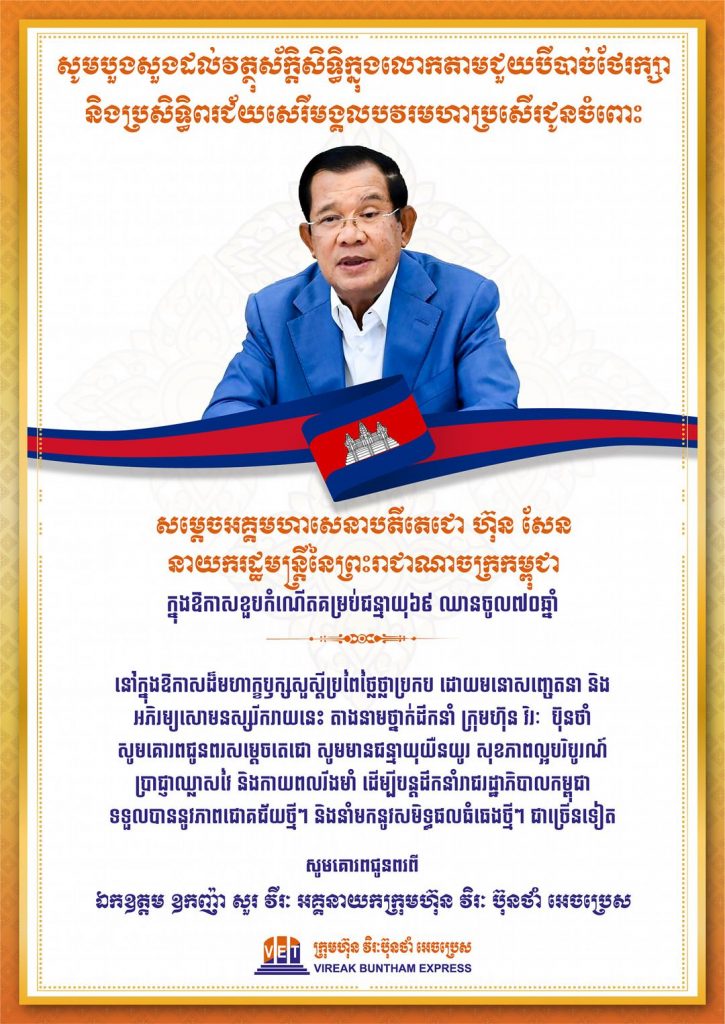 ឧកញ៉ា សួរ វីរៈ ផ្ញើសារលិខិតគោរពជូនពរសម្តេចអគ្គមហាសេនាបតីតេជោ ហ៊ុន សែន ក្នុងឪកាសប្រារព្ធពិធីខួបកំណើត ជុំវិញឧកញ៉ា ថ្ងៃព្រហស្បតិ៍ ០៥ សីហា ២០២១ ឧកញ៉ាកោះក្របី'