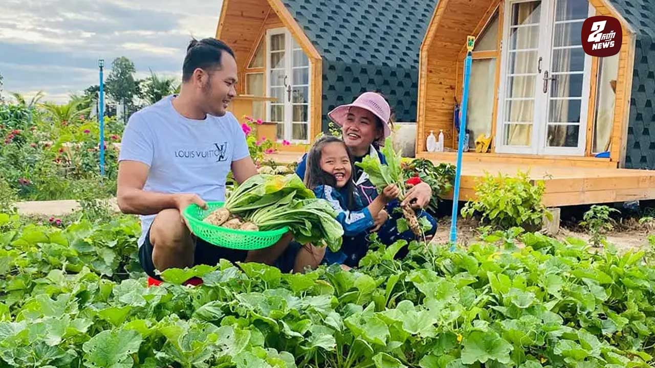 ឧកញ៉ាឡេង ប្រុស បានបង្ហាញសកម្មភាពជួបជុំគ្រួសារយ៉ាងស្រស់ស្រាយនៅផ្ទះលំហែរកាយនៅស្រុកកំណើត មានបរិយាកាសធម្មជាតិ អមដោយផលដំណាំជាច្រើនមុខមានបន្លែងបង្ការ ពោត មើមឆៃថាវ ដុះលូតលាស់ផ្តល់ផលជាបណ្តើរៗ។