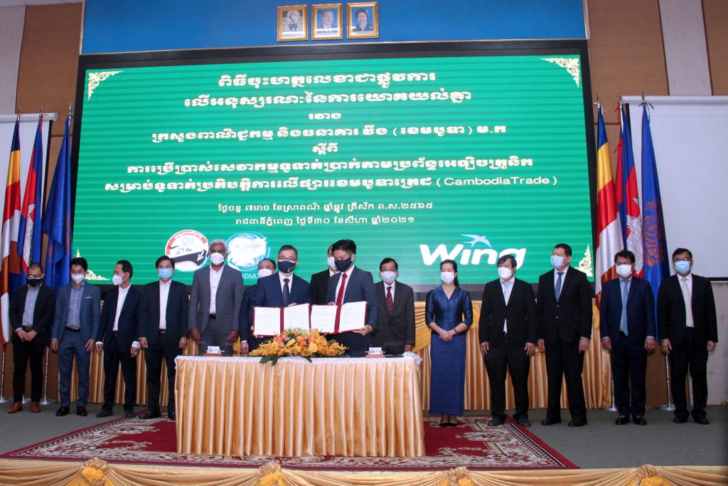 ក្រសួងពាណិជ្ជកម្ម និងធនាគារ វីង បានចុះហត្ថលេខាជាផ្លូវការលើអនុស្សរណៈនៃការយោគយល់គ្នា (MOU) ក្នុងការតភ្ជាប់ប្រព័ន្ធទូទាត់ប្រាក់តាមប្រព័ន្ធអេឡិចត្រូនិករបស់ធនាគារវីង សម្រាប់ទូទាត់ប្រតិបត្តិការលើផ្សារខេមបូឌាត្រេដ របស់ក្រសួងពាណិជ្ជកម្ម ដើម្បីបង្កភាពងាយស្រួល ឆាប់រហ័ស និងមានសុវត្ថិភាពជូនដល់អតិថិជន និងសហគ្រាសធុនតូច និងមធ្យមកម្ពុជា និងសហការក្នុងការផ្តល់វគ្គបណ្តុះបណ្តាលក្នុងការបង្កើនសមត្ថភាព និងចំណេះដឹងហិរញ្ញវត្ថុបែបឌីជីថលសម្រាប់សហគា្រសធុនតូច និងមធ្យមនៅកម្ពុជា។