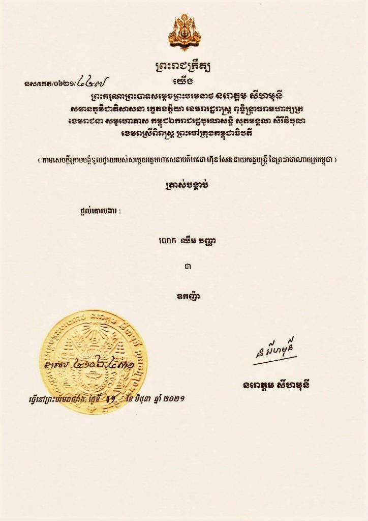 លោក ឈឹម បញ្ញា អគ្គនាយកបុរី ចន្ទខាស់សល និងជាអ្នកជំនួញអចលនទ្រព្យវ័យក្មេងលេចធ្លោល្បីឈ្មោះម្នាក់ក្នុងចំណោមពាណិជ្ជករអភិវឌ្ឍន៍អចលនទ្រព្យនៅប្រទេសកម្ពុជា ត្រូវបានព្រះករុណា ព្រះបាទសម្តេចព្រះបរមនាថ នរោត្តម សីហមុនី សព្វព្រះរាជហរទ័យព្រះរាជទាន តែងតាំងផ្តល់គោរមងារជា «ឧកញ៉ា » កាលពីថ្ងៃទី១ ខែមិថុនា ឆ្នាំ២០២១នេះ។