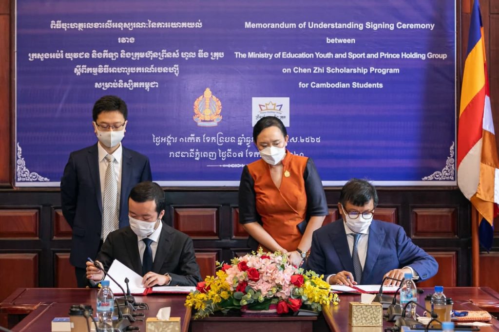 លោកបណ្ឌិតសភាចារ្យ ហង់ ជួន ណារ៉ុន រដ្ឋមន្ត្រីក្រសួងអប់រំ យុវជន និងកីឡា និងអ្នកឧកញ៉ា ចេន ហ្សុី ប្រធានសម្ព័ន្ធក្រុមហ៊ុន ព្រីនស៍ គ្រុប នៅថ្ងៃទី៧ កញ្ញាម្សិលមិញ បានចូលរួមធ្វើពិធីបញ្ចប់អនុស្សរណៈយោគយល់គ្នា ដើម្បីបើកដំណើរការកម្មវិធីអាហារូបករណ៍ សម្រាប់និស្សិតថ្នាក់សាកលវិទ្យាល័យ នៅក្នុងប្រទេសកម្ពុជា។
