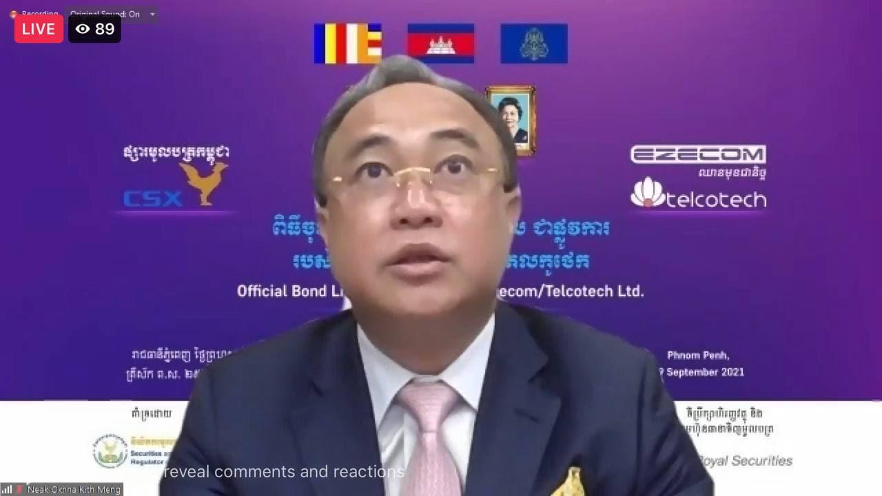 គិតត្រឹមថ្ងៃទី០៩ ខែកញ្ញា ឆ្នាំ២០២១ នេះ ចំនួនសាច់ប្រាក់ពីការបោះផ្សាយលក់មូលបត្របំណុលសរុប បានកើនឡើងដល់ ១៦៣លានដុល្លារ បន្ទាប់ពីក្រុមហ៊ុន Ezecom/Telcotech របស់អ្នកឧកញ៉ា គិត ម៉េង ចុះបញ្ជីជាផ្លូវការក្នុងទីផ្សារមូលត្រកម្ពុជា។ នេះបើតាមការឱ្យដឹងពី លោក ស៊ូ សុជាតិលោក ស៊ូ សុជាតិ ប្រតិភូរាជរដ្ឋាភិបាលទទួលបន្ទុកជាអគ្គនាយក នៃនិយតករមូលបត្រកម្ពុជា ក្នុងពិធីចុះបញ្ជីលក់មូលបត្របំណុលជាផ្លូវការនៃក្រុមហ៊ុន Ezecom/Telcotech របស់អ្នកឧកញ៉ា គិត ម៉េង នាព្រឹកថ្ងៃទី០៩ ខែកញ្ញា ឆ្នាំ២០២១នេះ។