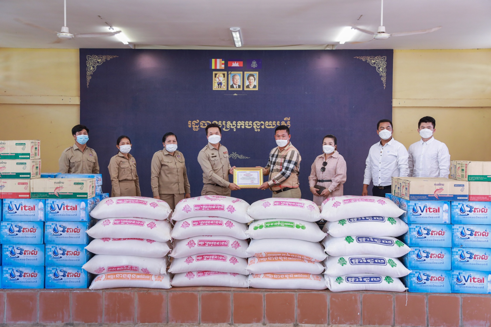 ជំនួយសប្បុរសធម៌ជាគ្រឿងឧបភោគបរិភោគ ដែលស្ថាបនិកក្រុមហ៊ុន ហ៊ួត ជា ផ្គត់ផ្គង់គ្រឿងសំណង់គ្រប់ប្រភេទ ដឹកនាំដោយផ្ទាល់ប្រគល់ជូនអភិបាលស្រុកបន្ទាយស្រី លោក ឃឹម ហ្វីណង់ សម្រាប់ប្រើប្រាស់អំឡុងពេលប្រយុទ្ធប្រឆាំងនឹងការរីករាលដាលនៃជំងឺកូវីត១៩ ក៏ដូចជាសម្រាប់ចែកជូនបងប្អូនប្រជាពលរដ្ឋដែលកំពុងធ្វើចត្តាឡីស័កតាមផ្ទះ រួមមានដូចជា៖ អង្ករ ១តោន ត្រីខ ៣០កេសធំ ទឹកសុទ្ធ ១០០កេស ។