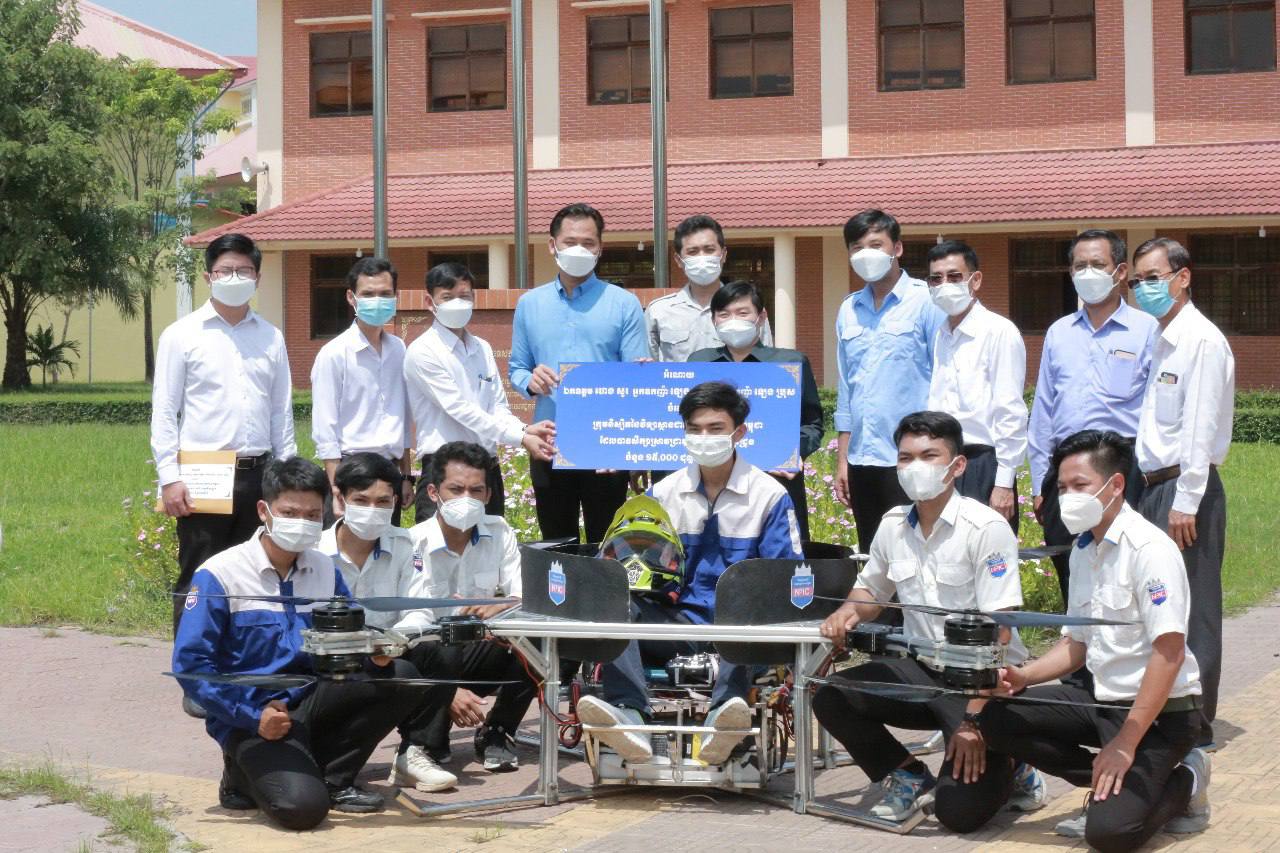 និស្សិតកម្ពុជា ២រូប ដែលបានផលិត Drone ដឹកមនុស្សសម្រួលដល់កិច្ចការពន្លត់អគ្គិភ័យដោយជោគជ័យ។ នៅព្រឹកថ្ងៃទី២៩ ខែ កញ្ញា ឆ្នាំ ២០២១នេះបានអំណោយ ១៥០០០ ដុល្លារ ជាការលើកទឹកពីឯកឧត្ដមហេង សួរ រដ្ឋលេខាធិការក្រសួងការងារនិងបណ្ដុះបណ្ដាលវិជ្ជាជីវៈ អ្នកឧកញ៉ា ឡេង ណាវ៉ាត្រា និង លោក ឧកញ៉ា ឡេង ប្រុស ដែលពិធីប្រគល់អំណោយនេះបានធ្វើឡើង នៅវិទ្យាស្ថានជាតិពហុបច្ចេកវិជ្ជាកម្ពុជា (NPIC) ។