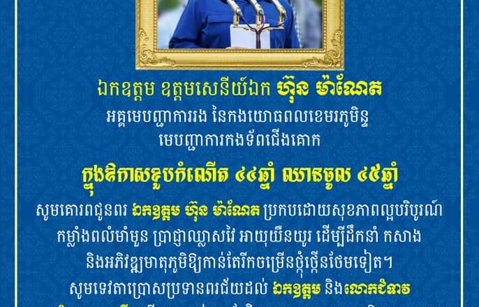 ឧកញ៉ា សំ សុខនឿន សូមគោរពជូនពរ ឯកឧត្តម ឧត្តមសេនីយ៍ឯក ហ៊ុន ម៉ាណែត ក្នុងឱកាសខួបកំណើត ជុំវិញឧកញ៉ា ថ្ងៃពុធ ២០ តុលា ២០២១ ឧកញ៉ាកោះក្របី'