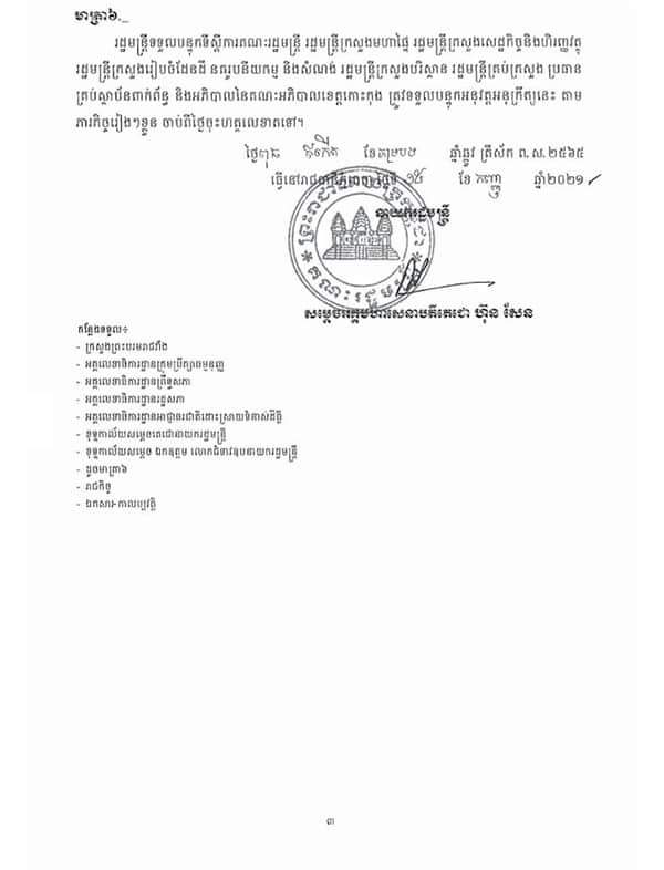 តាមរយៈលិខិតដដែល រដ្ឋាភិបាលបានណែនាំឲ្យក្រសួងបរិស្ថាន ត្រូវចុះពិនិត្យសិក្សាអំពីទីតាំង ដែលក្រុមហ៊ុនបានស្នើសុំដោយសហការជាមួយរដ្ឋបាលខេត្តកោះកុង និងក្រុមហ៊ុនរ៉ូយ៉ាល់គ្រុប ដើម្បីកំណត់ទីតាំងដីជាក់ស្ដែង ដែលរាជរដ្ឋាភិបាលផ្ដល់ជូនក្រុមហ៊ុន ក្នុងការអភិវឌ្ឍជាតំបន់សេដ្ឋកិច្ចពិសេស។ ចំណែកក្រុមហ៊ុនរ៉ូយ៉ាល់គ្រុប ត្រូវបំពេញបែបបទនិងនីតិវិធីជាមួយក្រុមប្រឹក្សាអភិវឌ្ឍន៍កម្ពុជា និងក្រសួងស្ថាប័នពាក់ព័ន្ធ៕