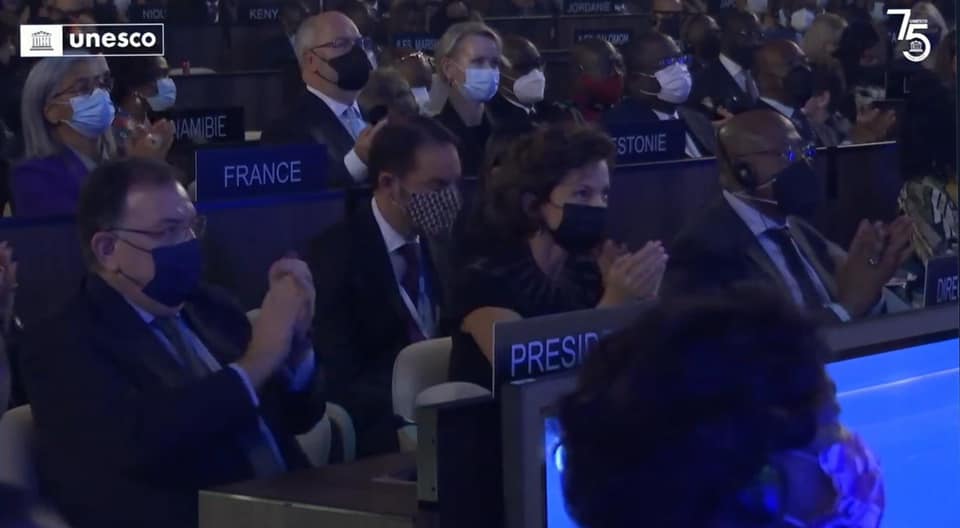 ព្រះករុណា ព្រះបាទសម្តេចព្រះបរមនាថ នរោត្តម សីហមុនី យាងចូលរួមក្នុងមហាសន្និបាតលើកទី ៤១របស់អង្គការយូណេស្កូ នៅទីក្រុងប៉ារីស កាលពីល្ងាចថ្ងៃទី១២ ខែវិច្ឆិកា ម្សិលមិញ តាមការអញ្ជើញរបស់លោកស្រី អូដ្រេយ អាហ្សូឡេយ អគ្គនាយិការនៃអង្គការយូណេស្កូ។