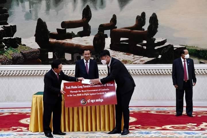 អ្នកឧកញ៉ា ឡេង ណាវ៉ាត្រា ផ្ដល់ជំនួយជាថវិកាចំនួន ២លានដុល្លារអាមេរិក ជូនដល់នាយករដ្ឋមន្រ្តីឡាវ ដើម្បីប្រយុទ្ធប្រឆាំងមេរោគរាតត្បាតសកលកូវីដ-១៩ ក្នុងដំណើរបំពេញទស្សនកិច្ចផ្លូវការនៅក្នុងប្រទេសកម្ពុជារយៈពេលពីរថ្ងៃ។
