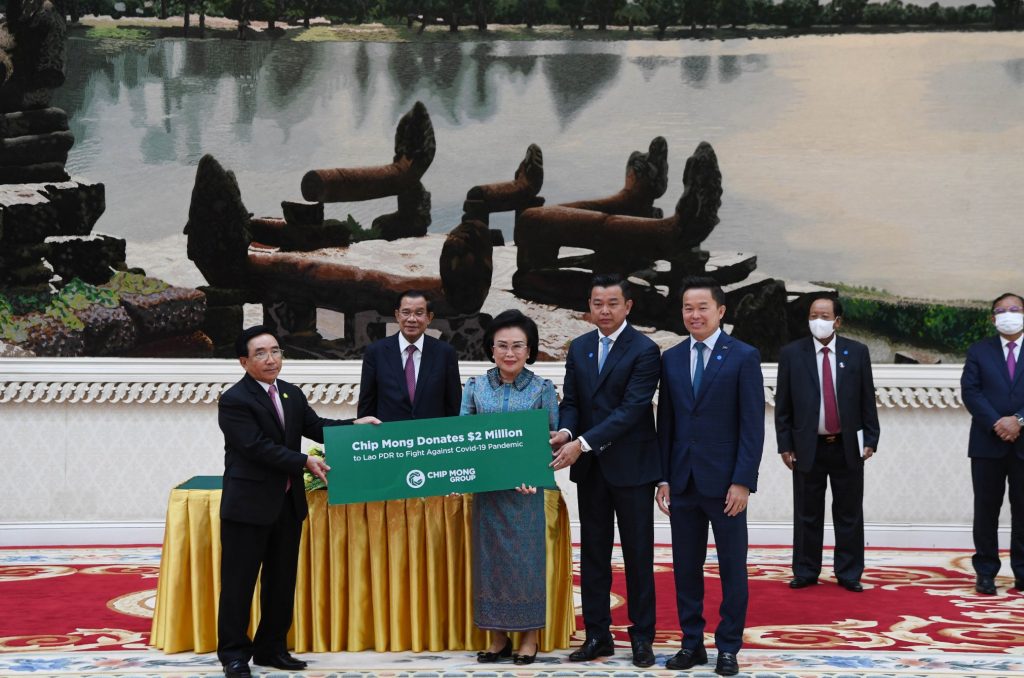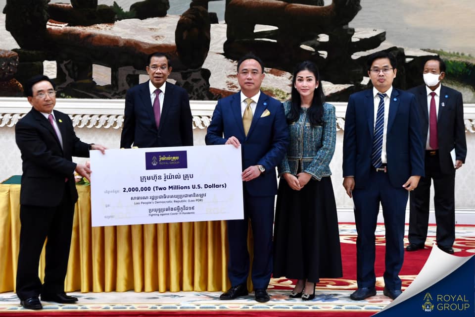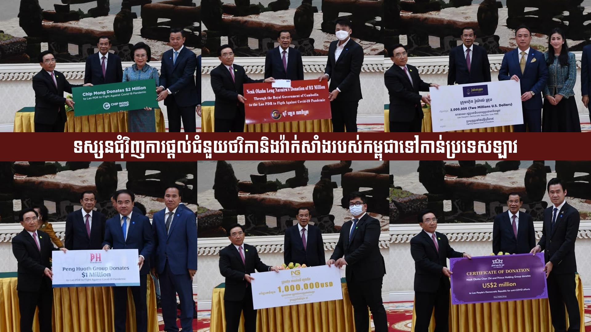 ទឹកប្រាក់ចំនួន ១៣លានដុល្លារ និងវ៉ាក់សាំងបង្ការជំងឺកូវីដ-១៩ ៥០ម៉ឺនដូសដែលជាជំនួយរួមគ្នារវាងបណ្តាអ្នកជំនួញធំៗ រួមនឹងរាជរដ្ឋាភិបាលកម្ពុជា កាលថ្ងៃទី ២៩ វិច្ឆិកាកន្លងទៅ បានប្រគល់ជូនដល់នាយករដ្ឋមន្រ្តីឡាវ ដើម្បីចូលរួមប្រយុទ្ធប្រឆាំងមេរោគកូវីដ-១៩។