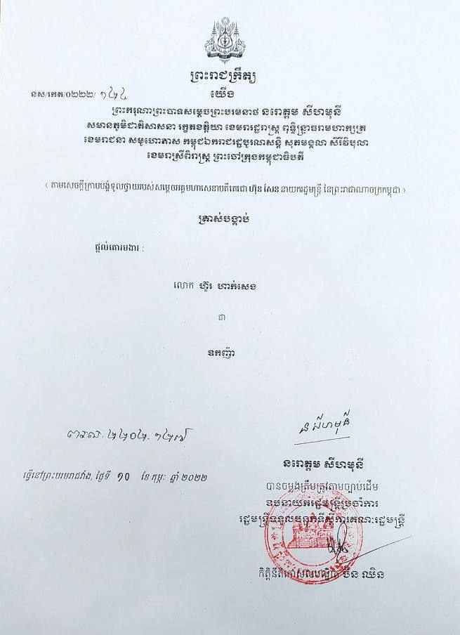 ព្រះករុណា ព្រះបាទសម្តេចព្រះបរមនាថ នរោត្តម សីហមុនី ព្រះមហាក្សត្រកម្ពុជា ត្រាស់បង្គាប់ផ្តល់គោរមងារជា “ឧកញ៉ា” ឲ្យលោក ហ៊ួរ ហាក់សេង ដែលជាម្ចាស់ហាងលក់គ្រឿងអលង្កាពេជ្រ ថន គឹមលី នៅថ្ងៃទី១០ ខែកុម្ភៈ ឆ្នាំ២០២២នេះ។