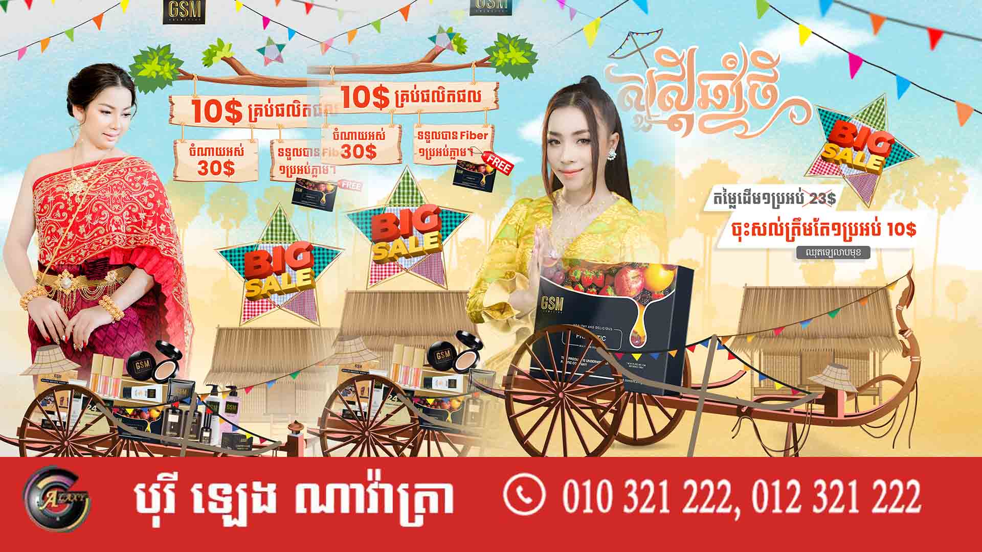 ជី អេស អឹម ឡេង ណាវ៉ាត្រា ខូសមេទិក ក្រុមហ៊ុនផ្គត់ផ្គង់ផលិតផលគ្រឿងសម្អាង ផលិតផលអាហារបំប៉នសម្រស់ និងផលិតផល Fiber សម្រករាងគ្រប់ប្រភេទ របស់លោកជំទាវឧកញ៉ា ឡេង បញ្ចពណ៌ កំពុងមានប្រូម៉ូសិនពិសេស អបអរឱកាសនៃពិធីបុណ្យចូលឆ្នាំថ្មីប្រពៃណីខ្មែរជូនដល់អតិថិជនទៀតហើយ។