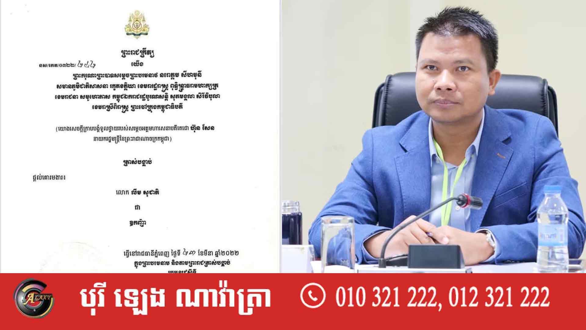 សម្តេចវិបុលសេនាភក្តី សាយ ឈុំ ប្រមុខរដ្ឋស្តីទី បានចេញព្រះរាជក្រឹត្យ​ផ្តល់​គោរមងារ​ឧកញ៉ា​ដល់​លោក លឹម សុជាតិ។