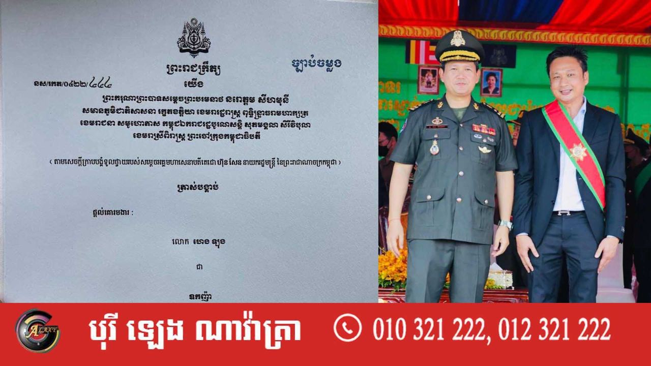 ព្រះករុណា ព្រះបាទ សម្ដេចព្រះបរមនាថ នរោត្ដម សីហមុនី ព្រះមហាក្សត្រ ទ្រង់សព្វព្រះរាជហឫទ័យត្រាស់បង្គាប់ផ្តល់គោរមងារឧកញ៉ា ជូនលោក ហេង ឡុង កាលពីថ្ងៃទី២៩ ខែមេសា ឆ្នាំ២០២២នេះ។