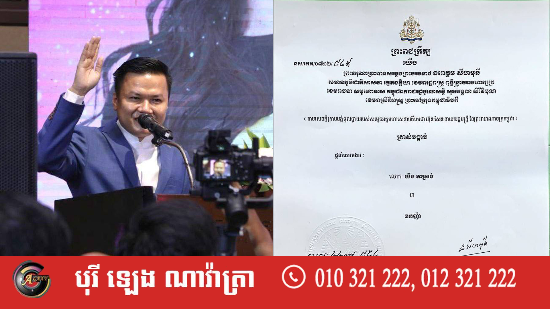 ព្រះករុណា ព្រះបាទសម្តេចព្រះបរមនាថ នរោត្តម សីហមុនី ព្រះមហាក្សត្រកម្ពុជា ទ្រង់ត្រាស់បង្គាប់ផ្តល់គោរមងារជា “ឧកញ៉ា” ទៅឱ្យលោក យឹម តាស្រង់ នាយកប្រតិបត្តិក្រុមហ៊ុន Eew9 កាលពីថ្ងៃទី២៣ ខែកក្កដា ឆ្នាំ២០២២ នេះ។