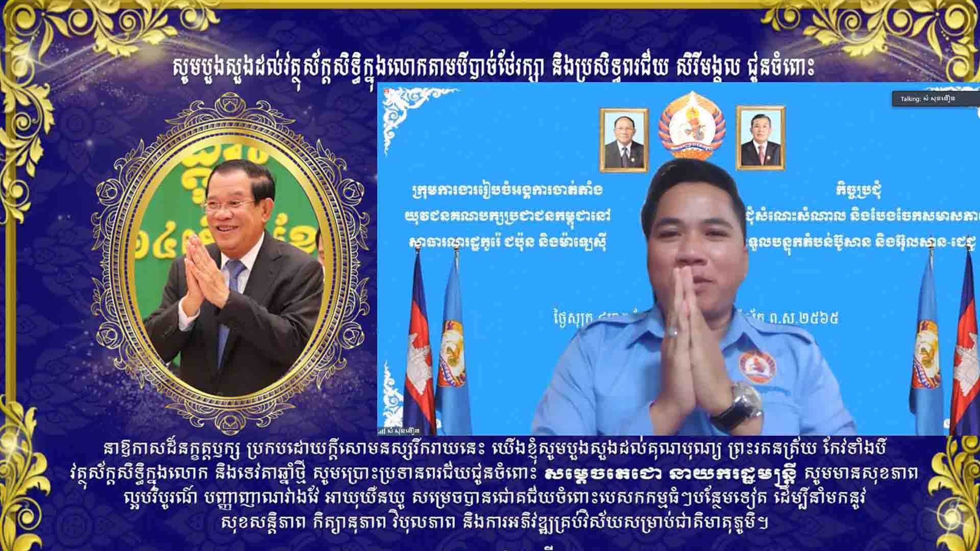 នាឱកាសដ៏នក្ខត្តឫក្ស ប្រកបដោយក្ដីសោមនស្សរីករាយនេះ យើងខ្ញុំសូមបួងសួងដល់គុណបុណ្យ ព្រះរតនត្រ័យ កែវទាំងបី វត្ថុស័ក្ដិសិទ្ធិក្នុងលោក និងទេវតាឆ្នាំថ្មី សូមប្រោះប្រទានពរជ័យជូនចំពោះ សម្ដេចតេជោនាយករដ្ឋមន្ត្រី សូមមានសុខភាពល្អបរិបូរណ៍ បញ្ញាញាណវាងវៃ អាយុយឺនយូរ សម្រេចបានជោគជ័យនូវបេសកកម្មធំធេងបន្ថែមទៀត ដើម្បីនាំមកនូវសុខសន្តិភាព កិត្យានុភាព វិបុលភាព និងការអភិវឌ្ឍគ្រប់វិស័យ។