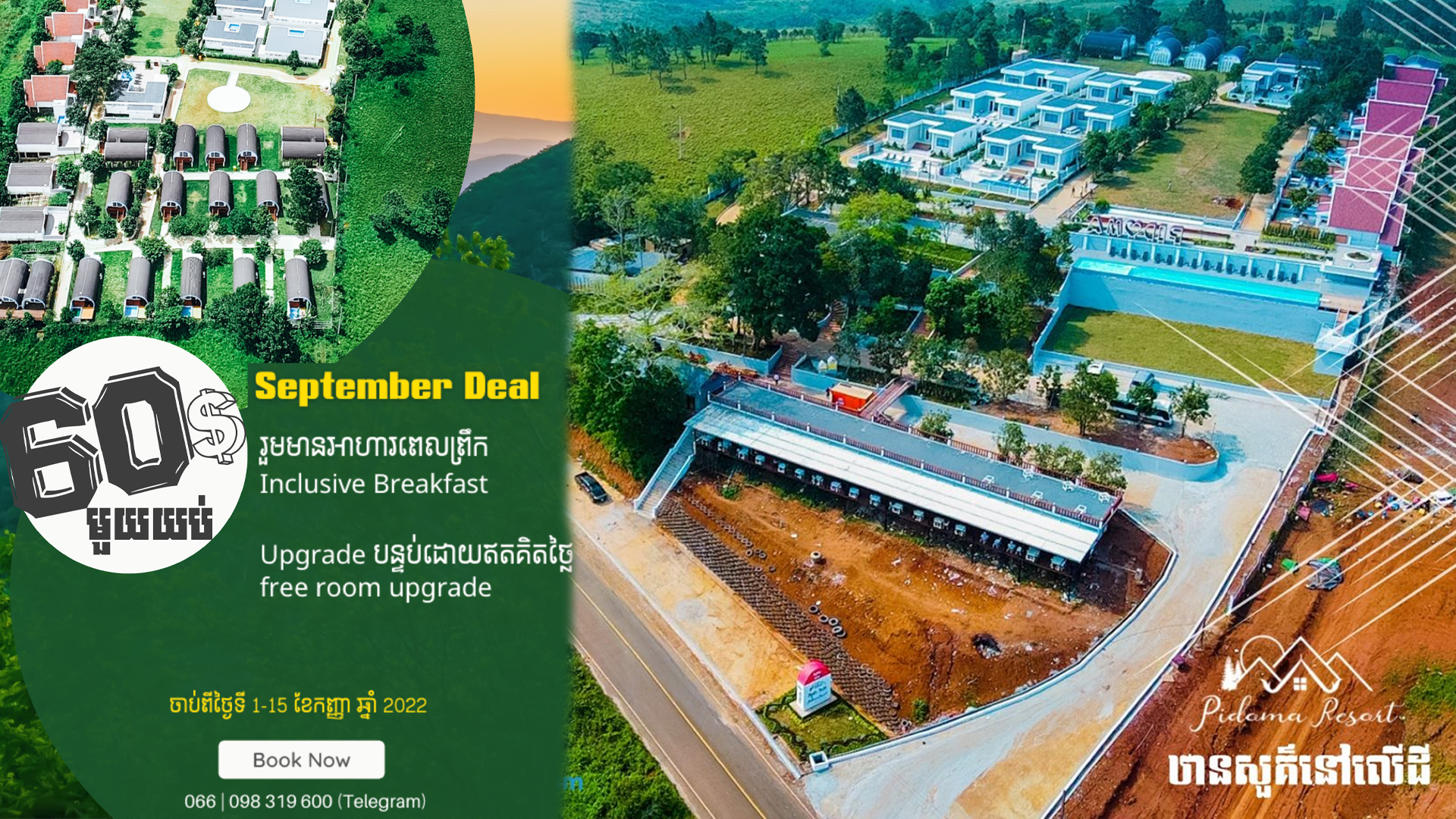 កន្លះខែពេញក្នុងខែកញ្ញា Pidoma Resort មានការបញ្ចុះតម្លៃពិសេសមិនធ្លាប់មាន