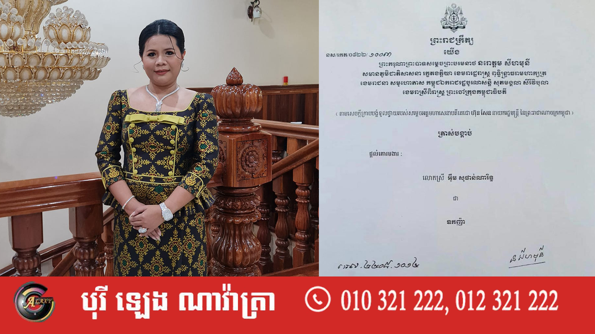លោកស្រី អ៊ឹម សុផាន់ណារិទ្ធ ម្ចាស់ក្រុមហ៊ុន IM SOPHANNARITH IMPORT EXPORT CO., LTD ដែលជាក្រុមហ៊ុននាំចូល និងលក់ចែកចាយនូវសាច់ជាច្រើនប្រភេទ ត្រូវបានព្រះមហាក្សត្រ នៃព្រះរាជាណាចក្រកម្ពុជា ចេញព្រះរាជក្រឹត្យត្រាស់បង្គាប់ផ្ដល់គោរមងារជា «ឧកញ៉ា» កាលពីថ្ងៃទី១៩ ខែសីហា ឆ្នាំ២០២២។