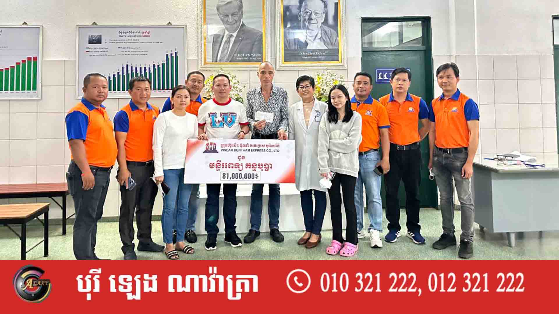 ចំថ្ងៃខួបកំណើត ស្ថាបនិកក្រុមហ៊ុន វីរៈ ប៊ុនថាំ ឧកញ៉ា សួរ វីរៈ ព្រមទាំងថ្នាក់ដឹកនាំក្រុមហ៊ុន វីរៈ ប៊ុនថាំ អេចប្រេស ដឹកជញ្ជូនអ្នកដំណើរក្នុង-ក្រៅ ប្រទេស និងសេវាកម្មបញ្ញើរឆាប់រហ័ស នាថ្ងៃទី០៨ ខែតុលា ២០២២នេះ បាននាំយកថវិកាចំនួន ៨១លានរៀល ចូលរួមឧបត្ថម្ភជូនដល់មន្ទីរពេទ្យគន្ធបុប្ផា។