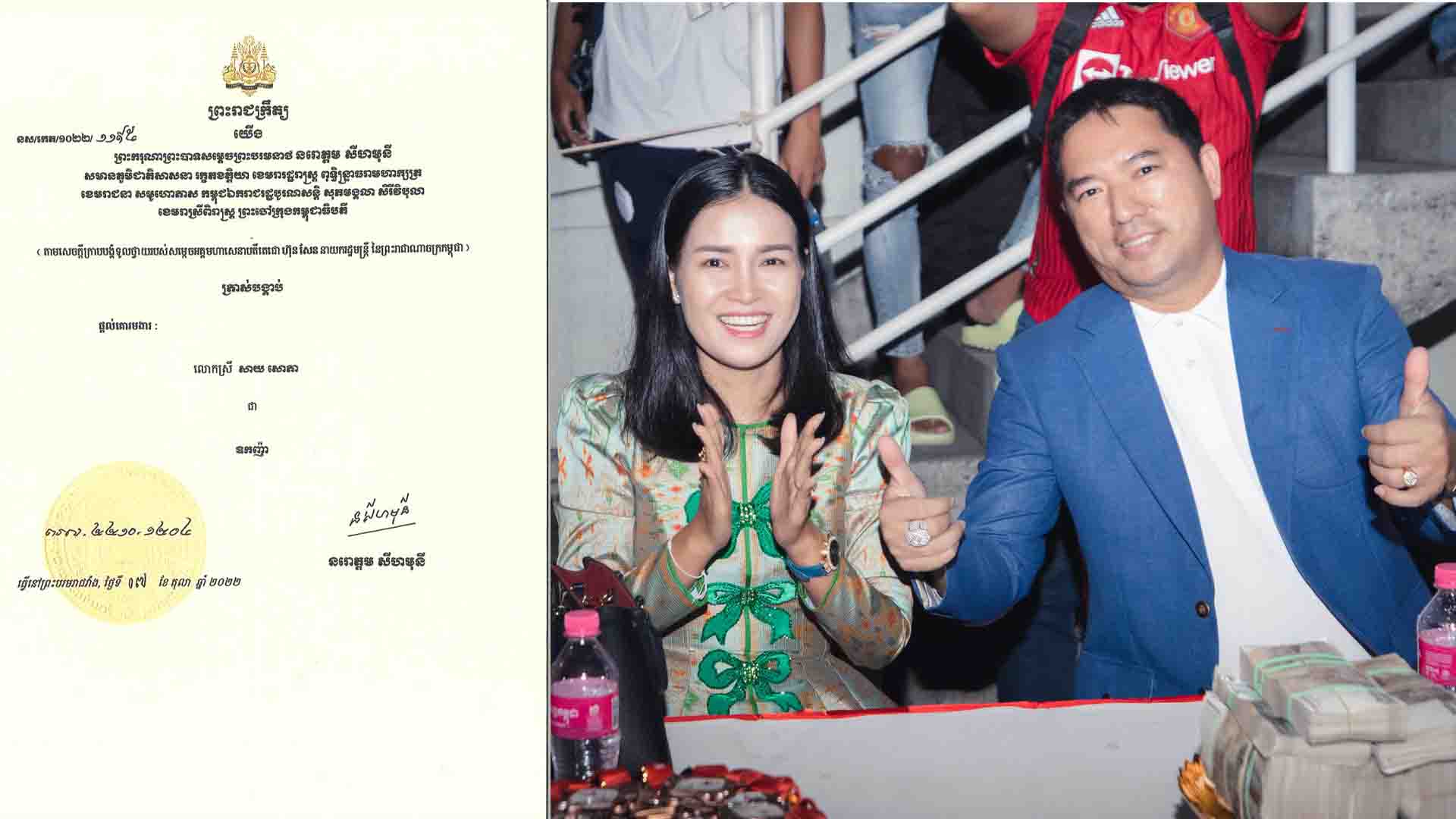 លោកជំទាវឧកញ៉ា គង់ សំណាង អគ្គនាយិកាបុរី វិមានសំណាង និងឧកញ៉ាបណ្ឌិត គីម ហ៊ាង ព្រមទាំងក្រុមគ្រួសារផ្ញើសារចូលរួមអបអរសាទរ លោកជំទាវ សាយ សោភា និងក្រុមគ្រួសារ ក្នុងឱកាសដែលលោកជំទាវ ត្រូវបានព្រះមហាក្សត្រផ្ដល់គោរមងារជា “ឧកញ៉ា” ។
