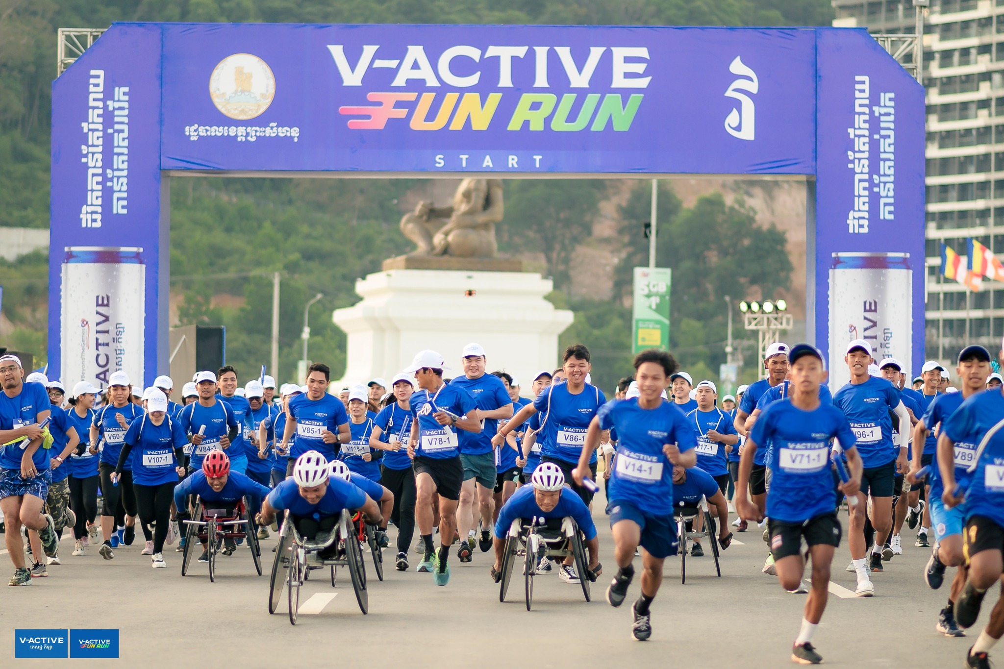 បើតាមអ្នករៀបចំព្រឹត្តការណ៍ រត់ប្រណាំងកម្សាន្តបណ្តាក់ជាក្រុម V-Active Fun Run បានឲ្យដឹងថា ការរត់បណ្តាក់ជាក្រុមនេះ គឺមានចម្ងាយ ១៩គីឡូម៉ែត្រ ដោយចេញពីរង្វង់មូលព្រះសិរៈ និងនាងឧមាវតី មកដល់ឆ្នេរទីលានតេជោ (កន្ទុយនាគ) ក្រុងព្រះសីហនុ ក្នុងនោះសមាជិកក្រុមរត់ម្នាក់ៗ ត្រូវប្រឹងប្រែងរត់ ៣គីឡូម៉ែត្រ មុនបោះដៃបន្តទៅឱ្យសមាជិកក្រុមបន្ត។